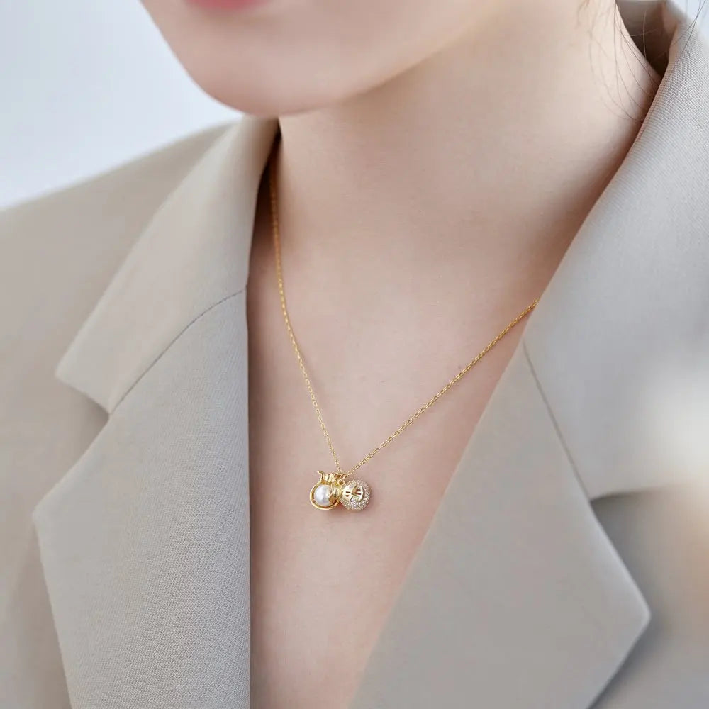 Aetolia 18K Gold Plated Zirconia Chain 925 Sterling Silver Necklaces Money Dollar Sign pearl Pendant Necklace For Women Choker Jewelry