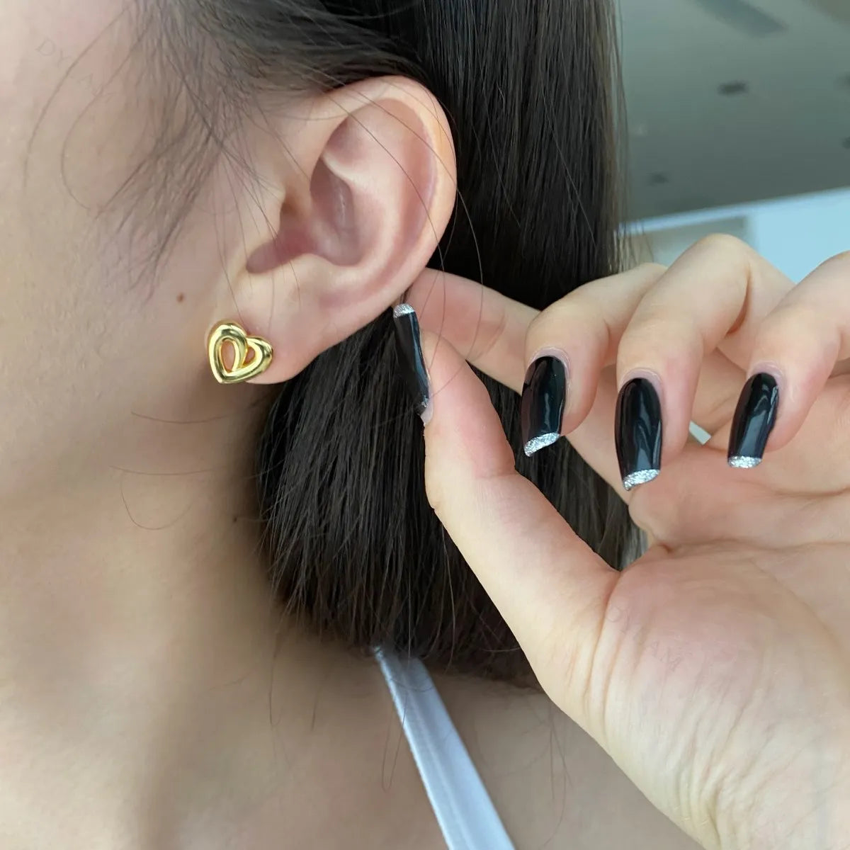 Aetolia Simple Design Jewelry Women Stud Earring Irregular Concave-Convex Wide Surface Heart Shape 925 Sterling Silver Earrings