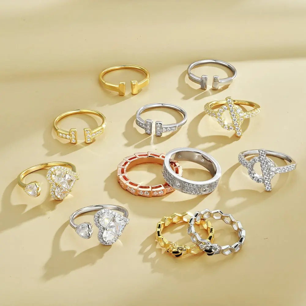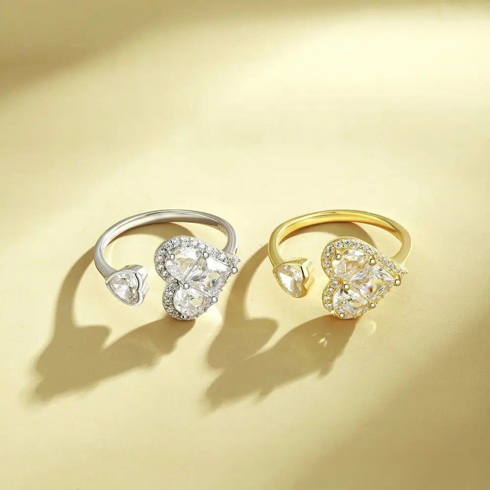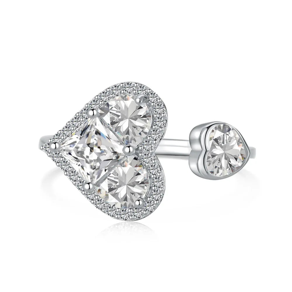 Aetolia Custom Luxury adjustable Heart Shaped Cubic Zircon Diamond Women open Promise Engagement Wedding 925 Sterling Silver Ring