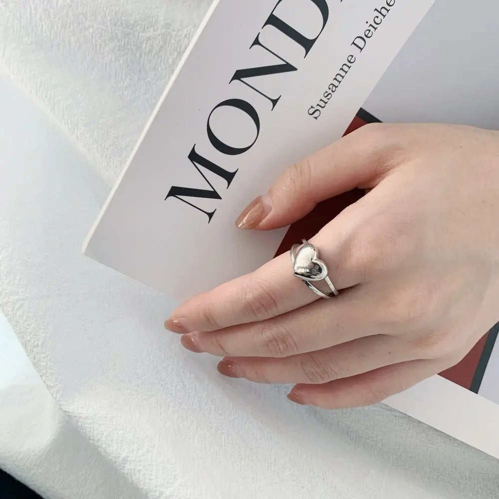 Aetolia Heart Shape Open Adjustable Lovers Ring S925 Sterling Silver Ring Set Fashion Simple Stacking Women'S Rings For Women