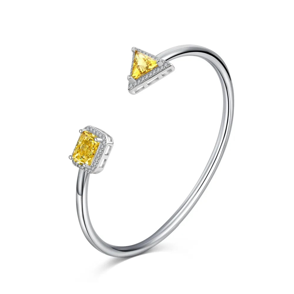Aetolia New Arrival Iced Out Bling Open Adjustable Square Yellow Green Bracelets Bangles 925 Sterling Silver Cz Bracelet For Women