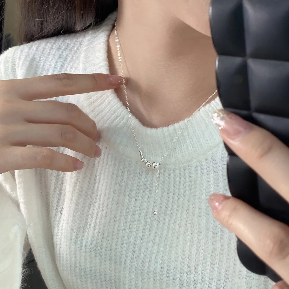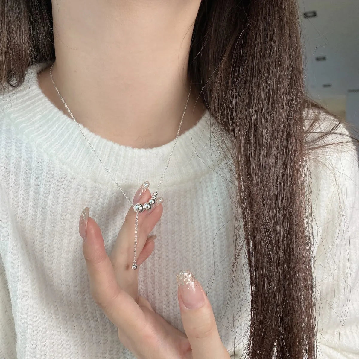 Aetolia Simple Design Fine Jewelry Daily Wear 925 Sterling Silver necklace long Link Chain Beaded Pendant Necklaces for Women