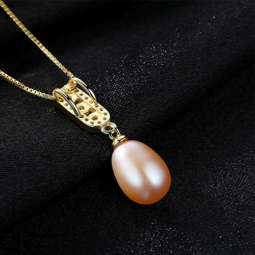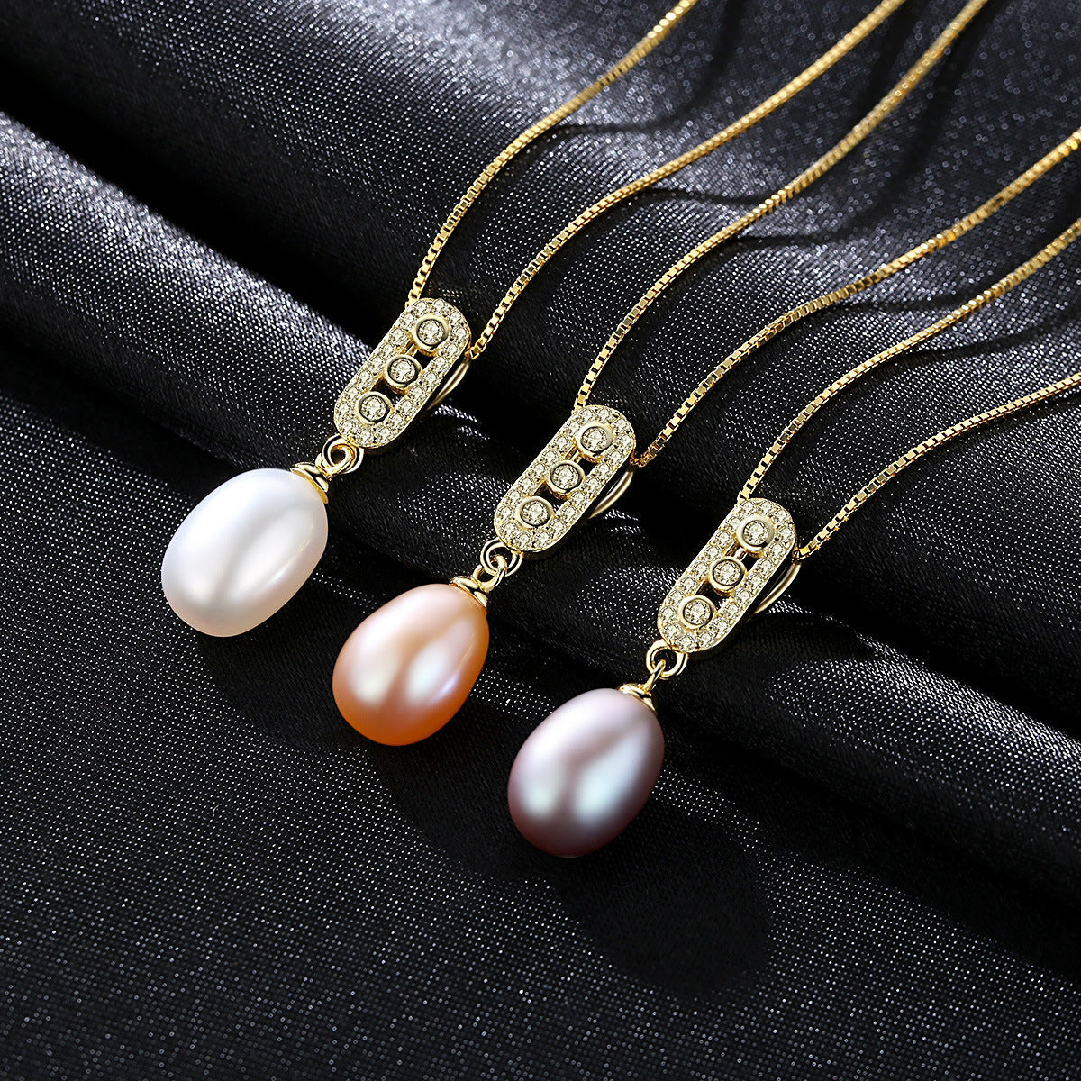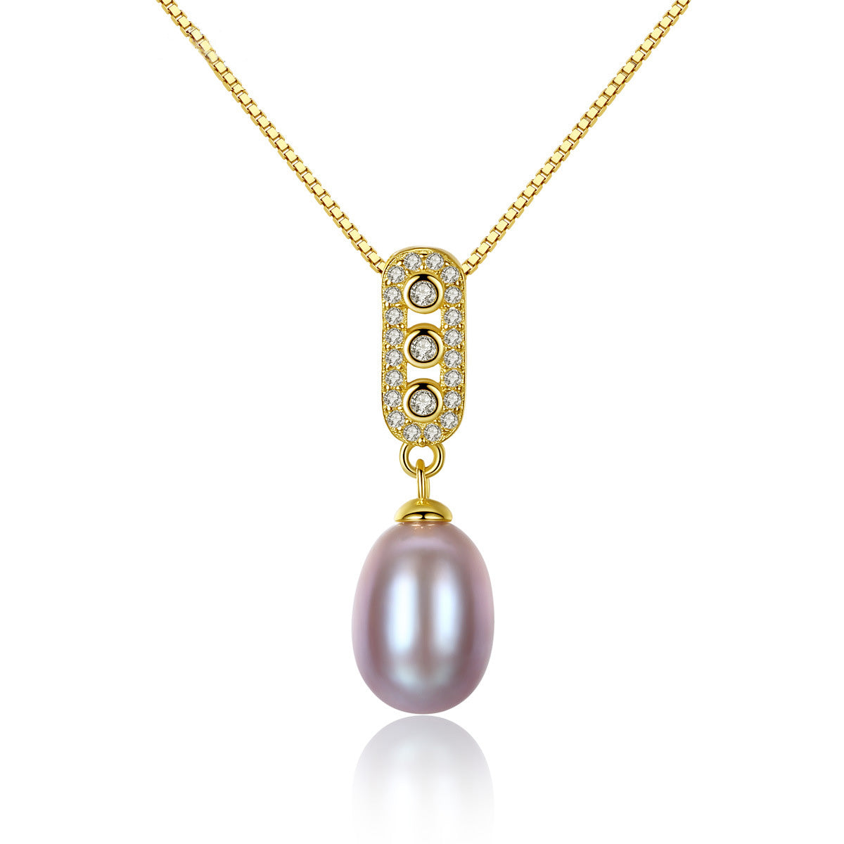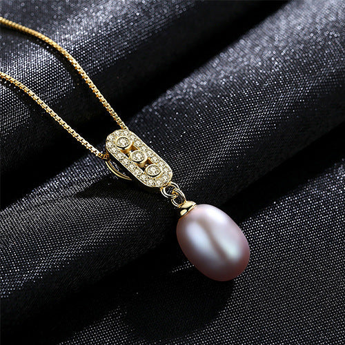 Aetolia 925 Sterling Silver Natural Freshwater Pearl Necklace 3 Bezel Set Halo CZ Diamond Pendant Necklace FN0016