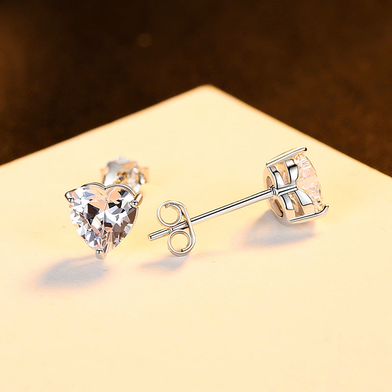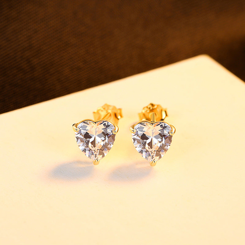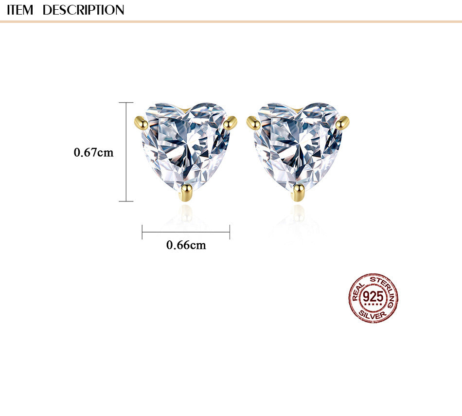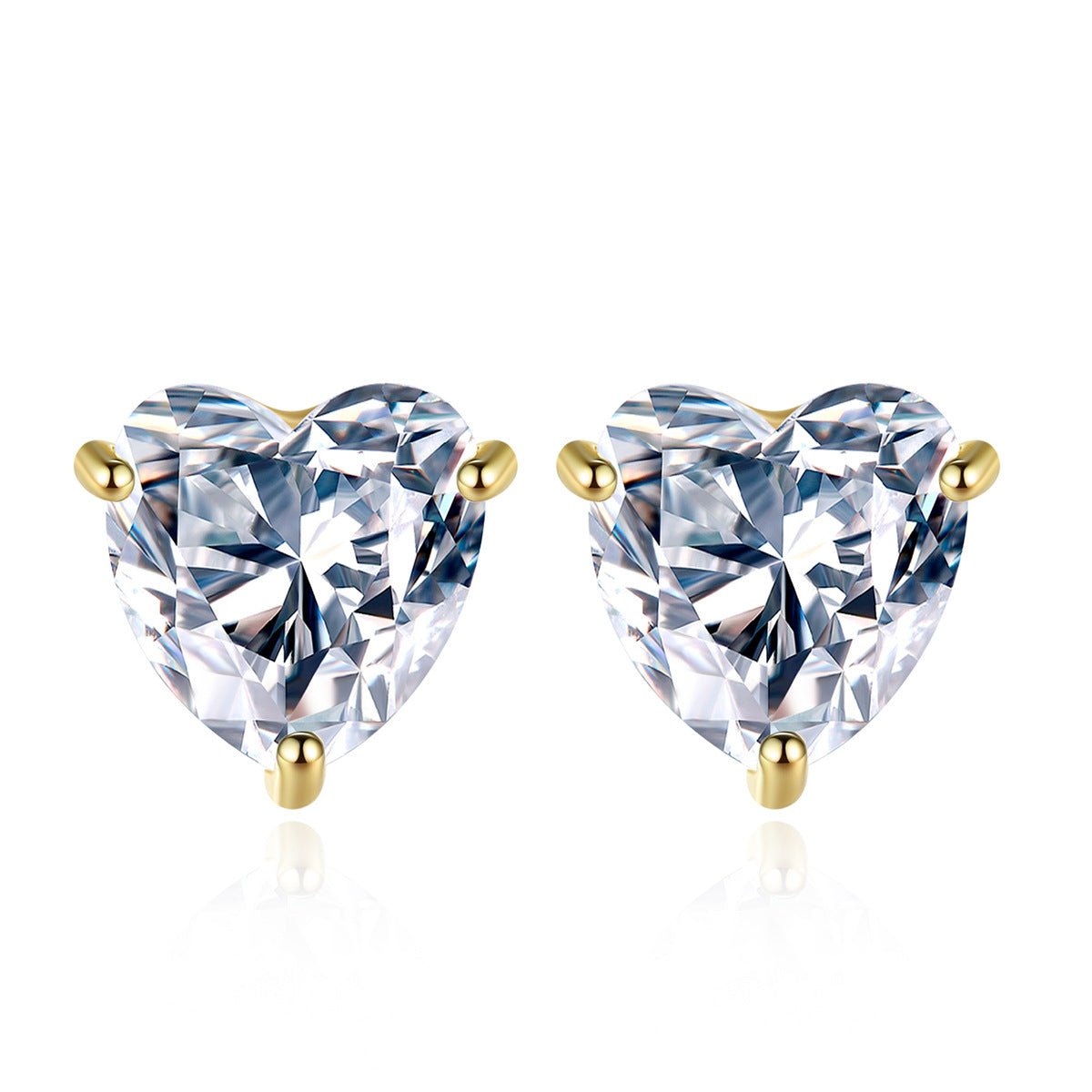 Aetolia 925 Sterling Silver 18K Gold Plated 3 Prongs Heart Solitaire Stud Earrings SE20091508
