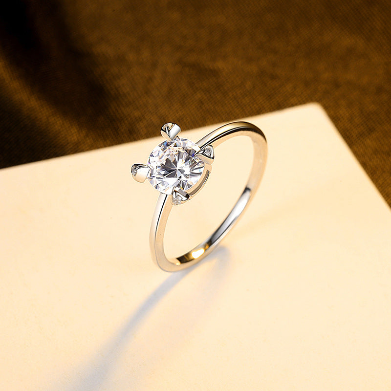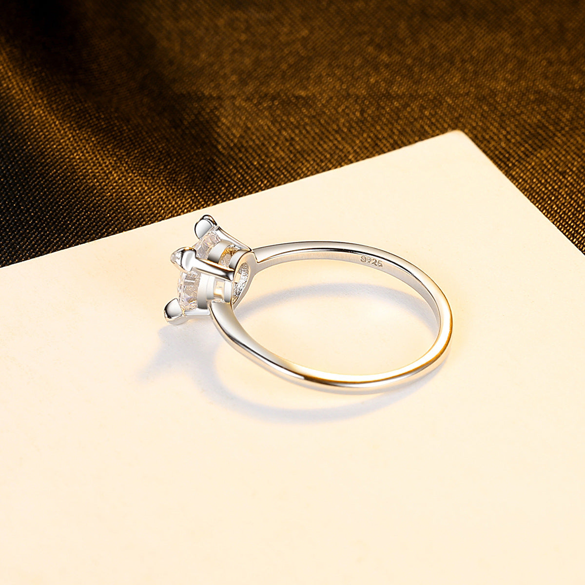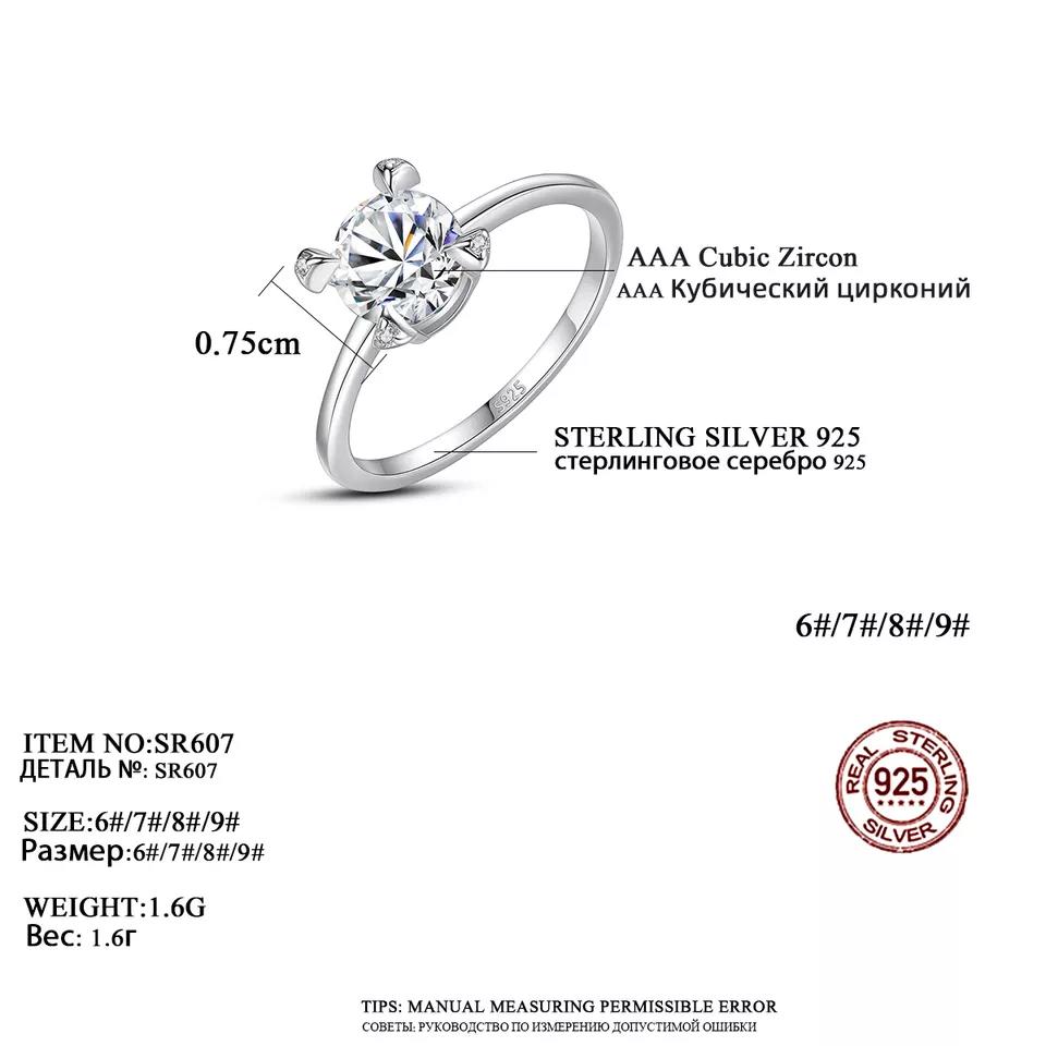 Aetolia 925 Sterling Silver 18K Gold Plated Brilliant 4 Prong Round Solitaire Engagement Wedding Ring SR607
