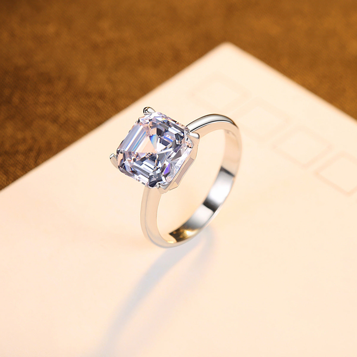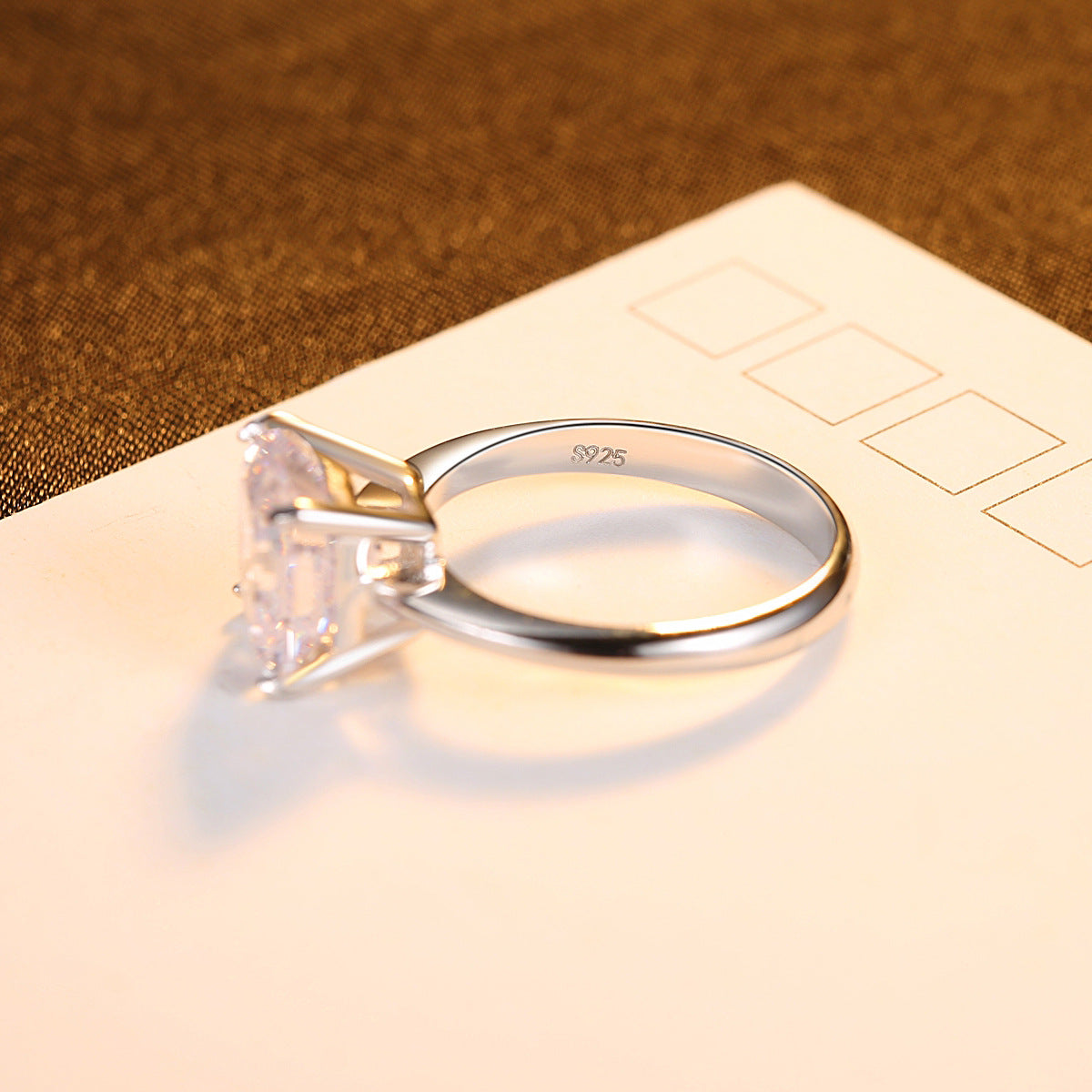 Aetolia 925 Sterling Silver 18K Gold Plated 4 Prong Square Solitaire Engagement Wedding Ring SR-492
