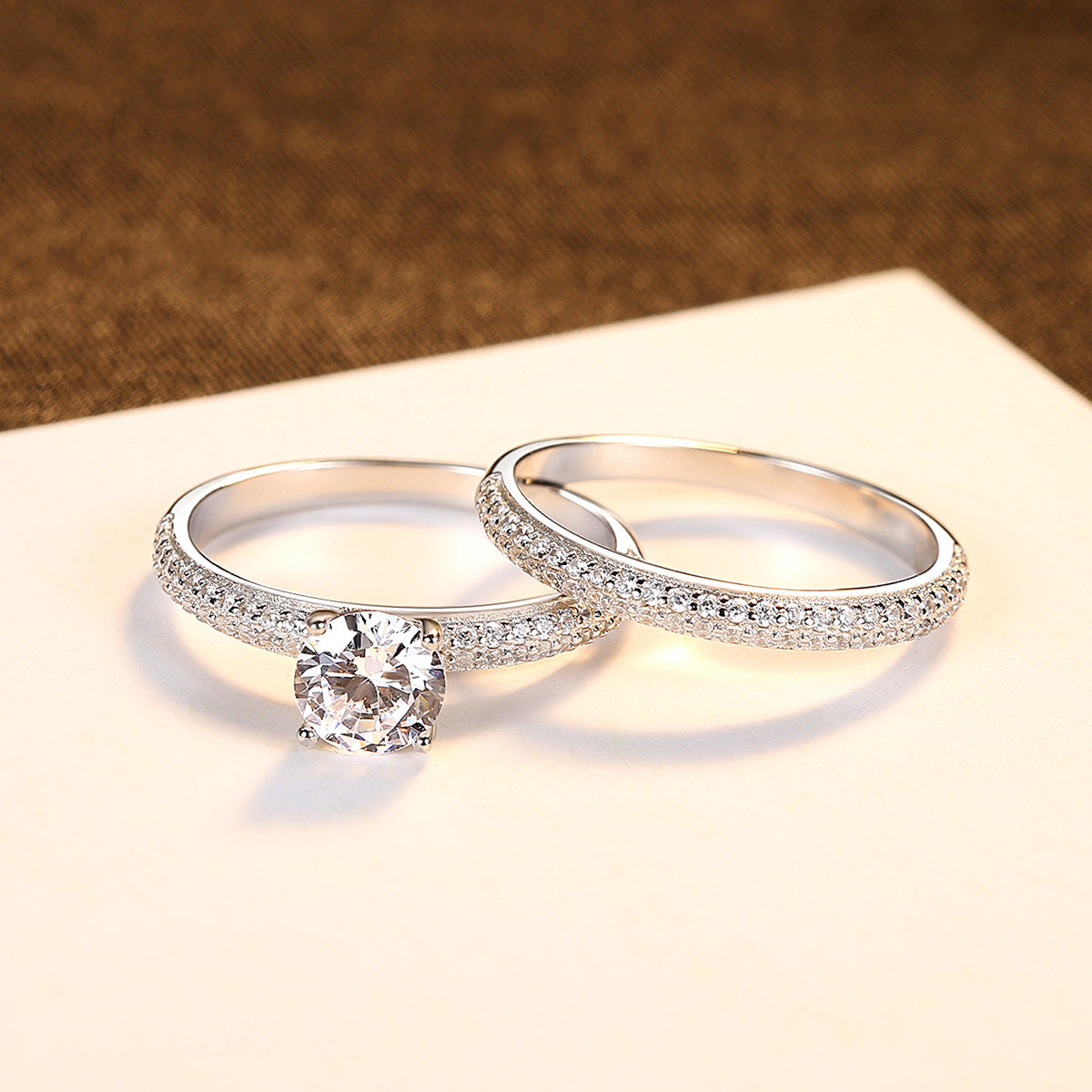 Aetolia 925 Sterling Silver 18K Gold Plated Double Stackable 4 Prongs Round Engagement Wedding Rings Set SR20061324