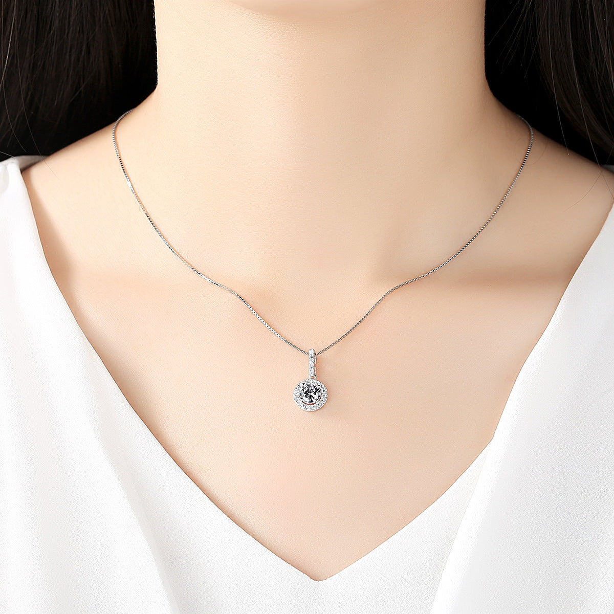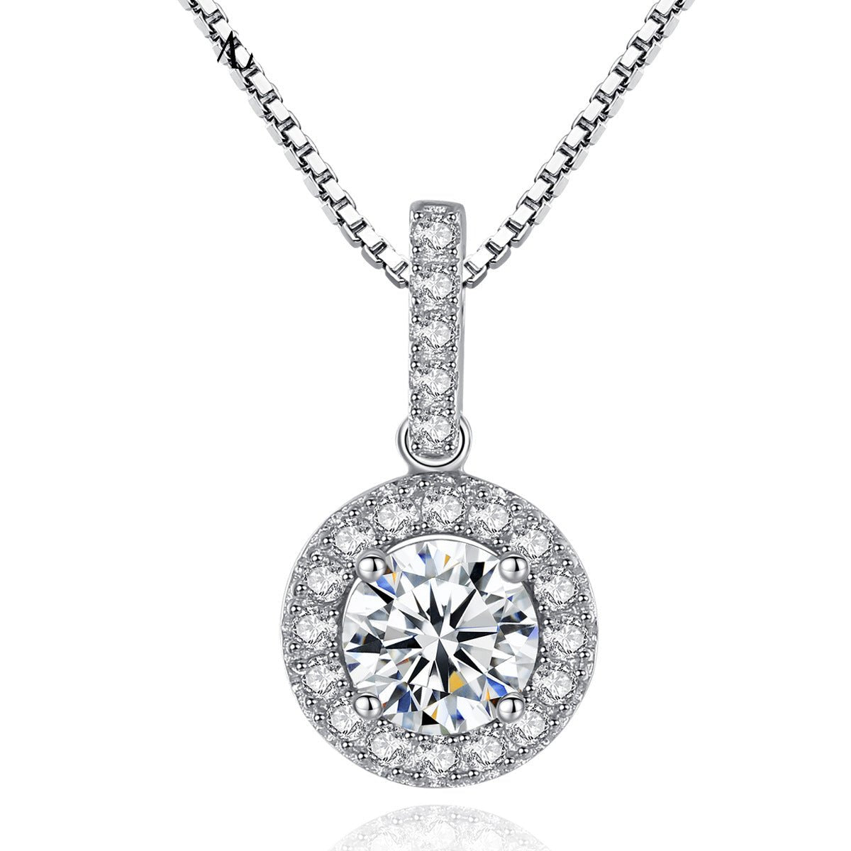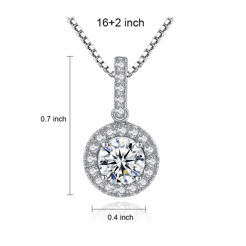 Aetolia 925 Sterling Silver 18K Gold Plated Elegant Round 4 Prongs Solitaire Halo Pendant Necklace SN0024