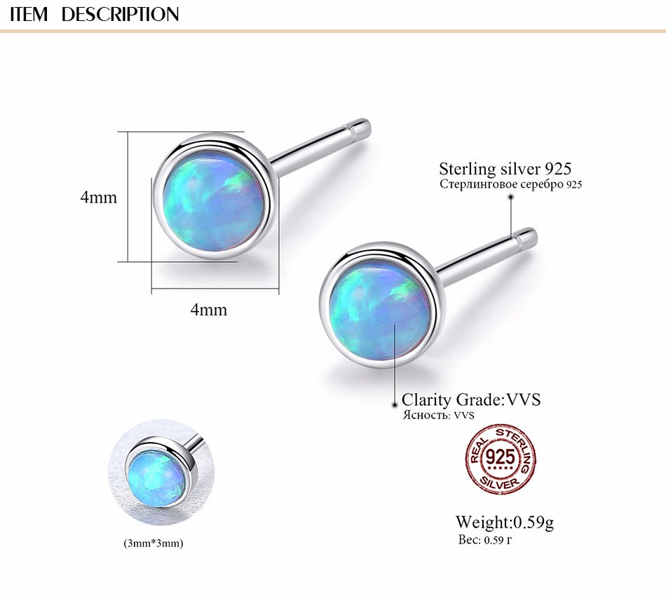 Aetolia 925 Sterling Silver Opal Earrings 4MM Round Fire Opal Stud Earrings SE0234