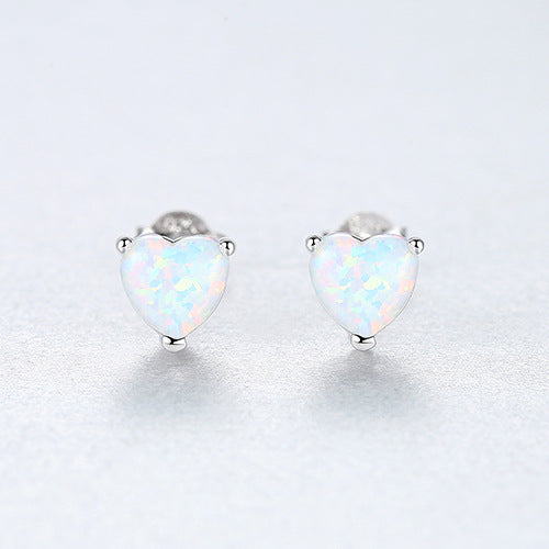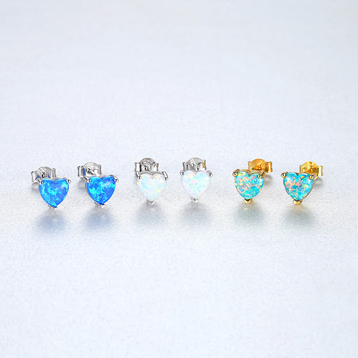 Aetolia 925 Sterling Silver Opal Earrings 3 Prong Cute Heart Opal Stud Earrings SE0240