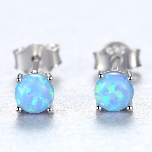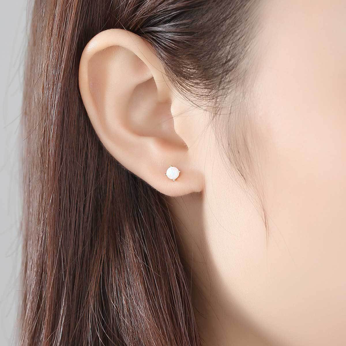 Aetolia 925 Sterling Silver Opal Earrings 4 Prongs Ball Opal Stud Earrings SE0315