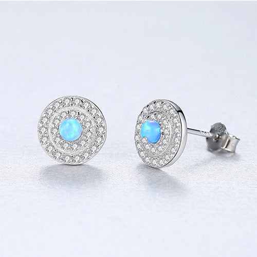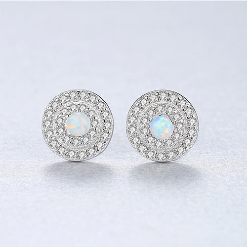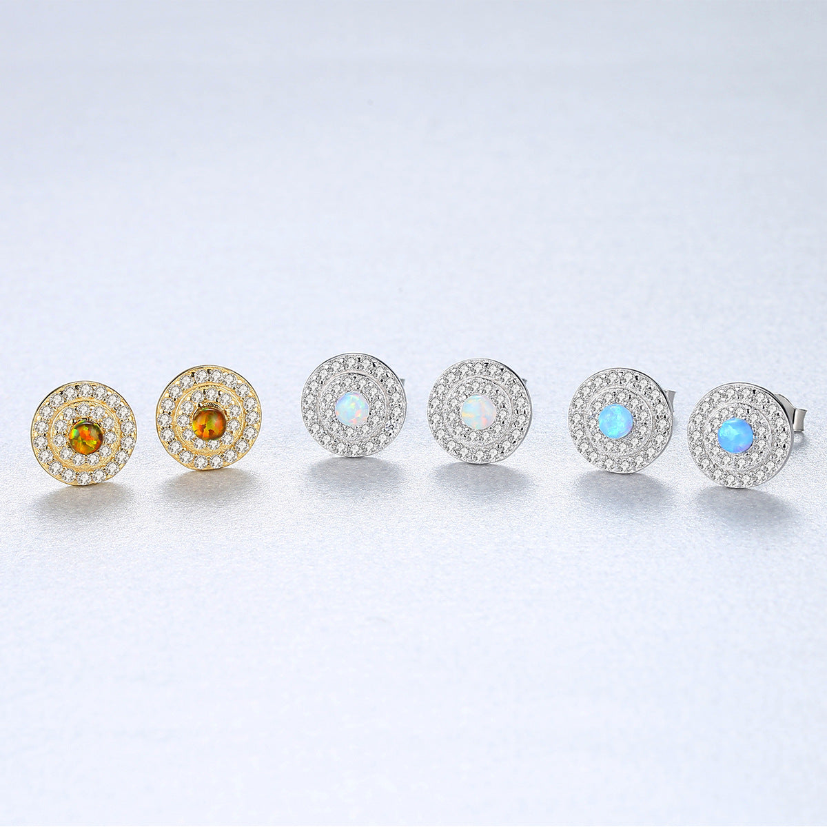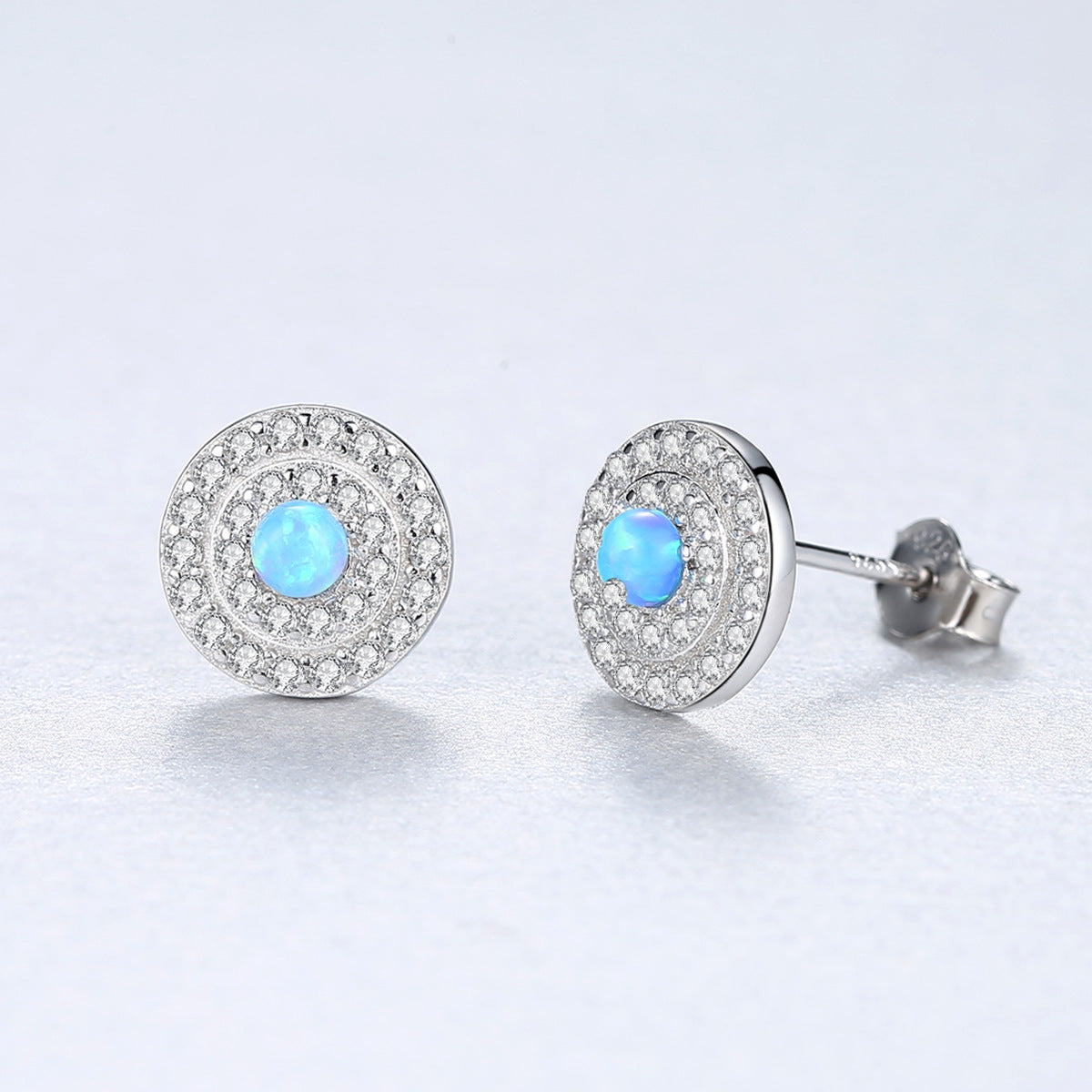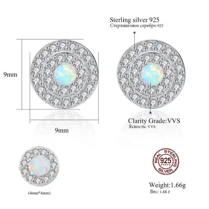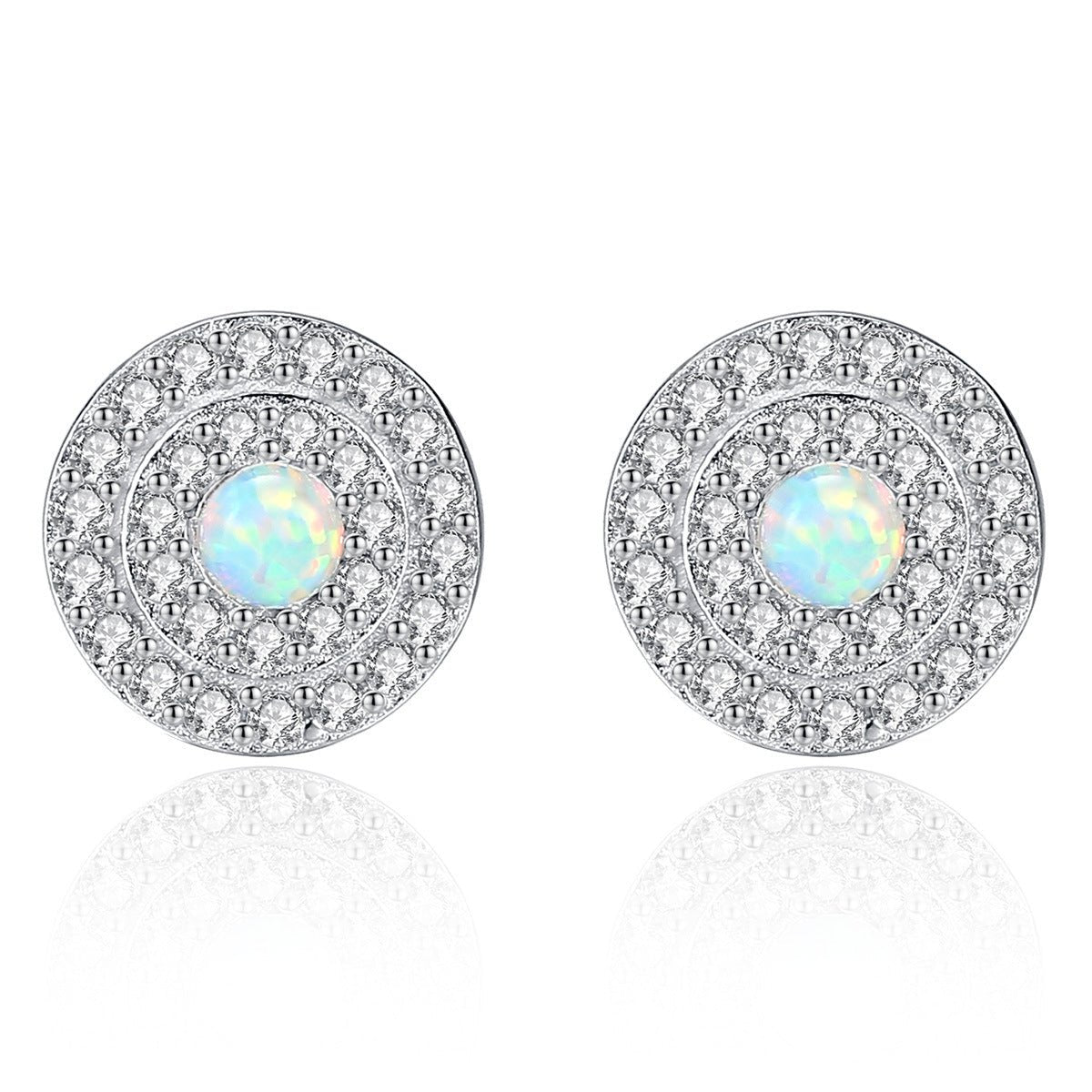 Aetolia 925 Sterling Silver Opal Earrings Circular Halo CZ Diamond Opal Stud Earrings SE0230