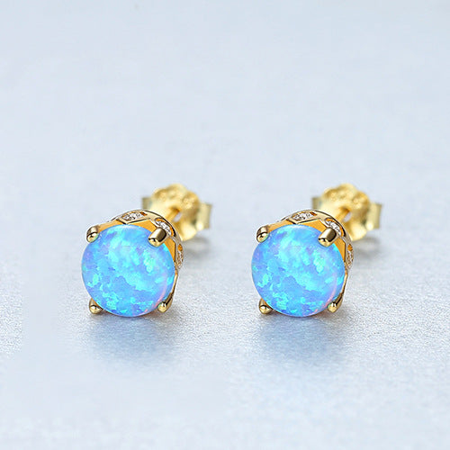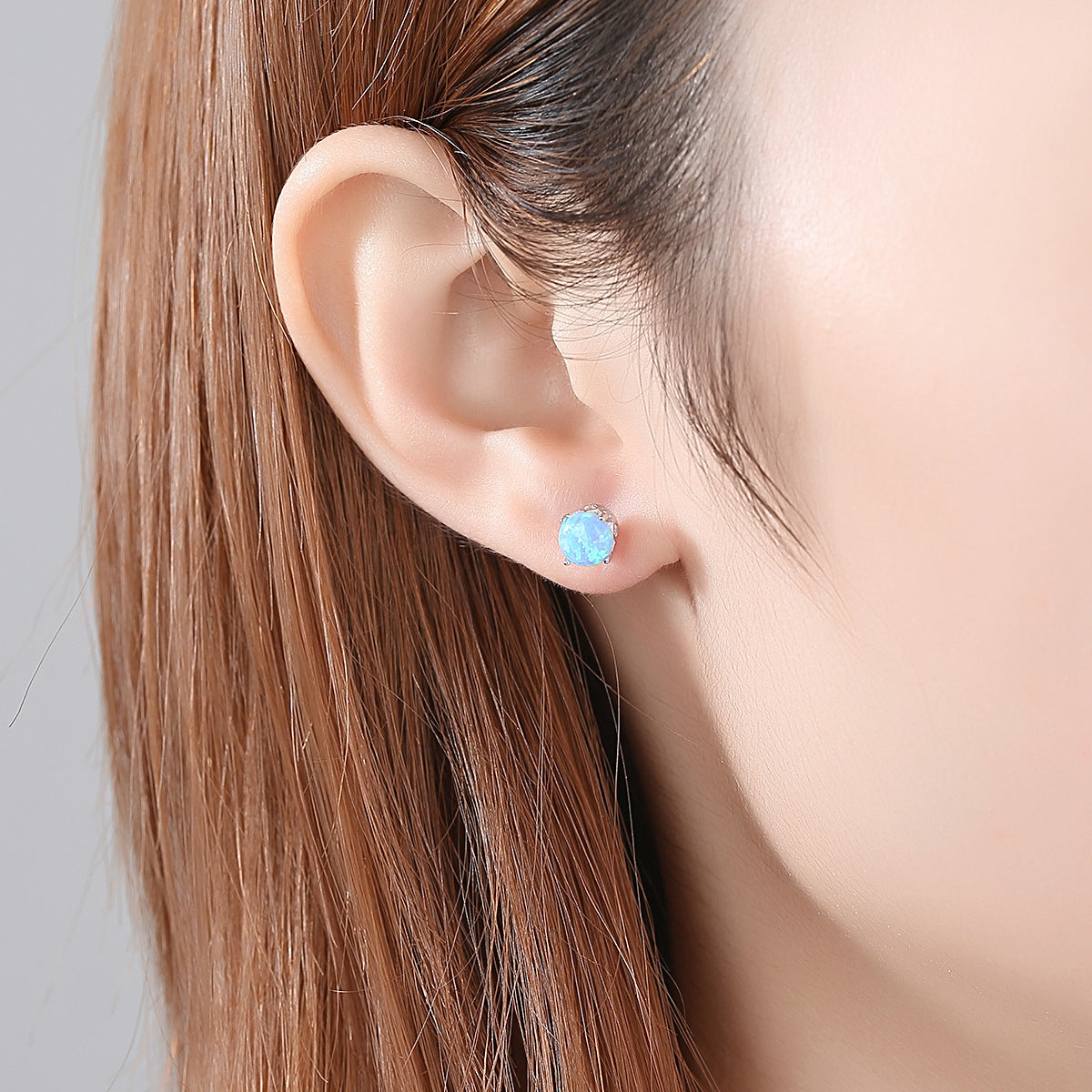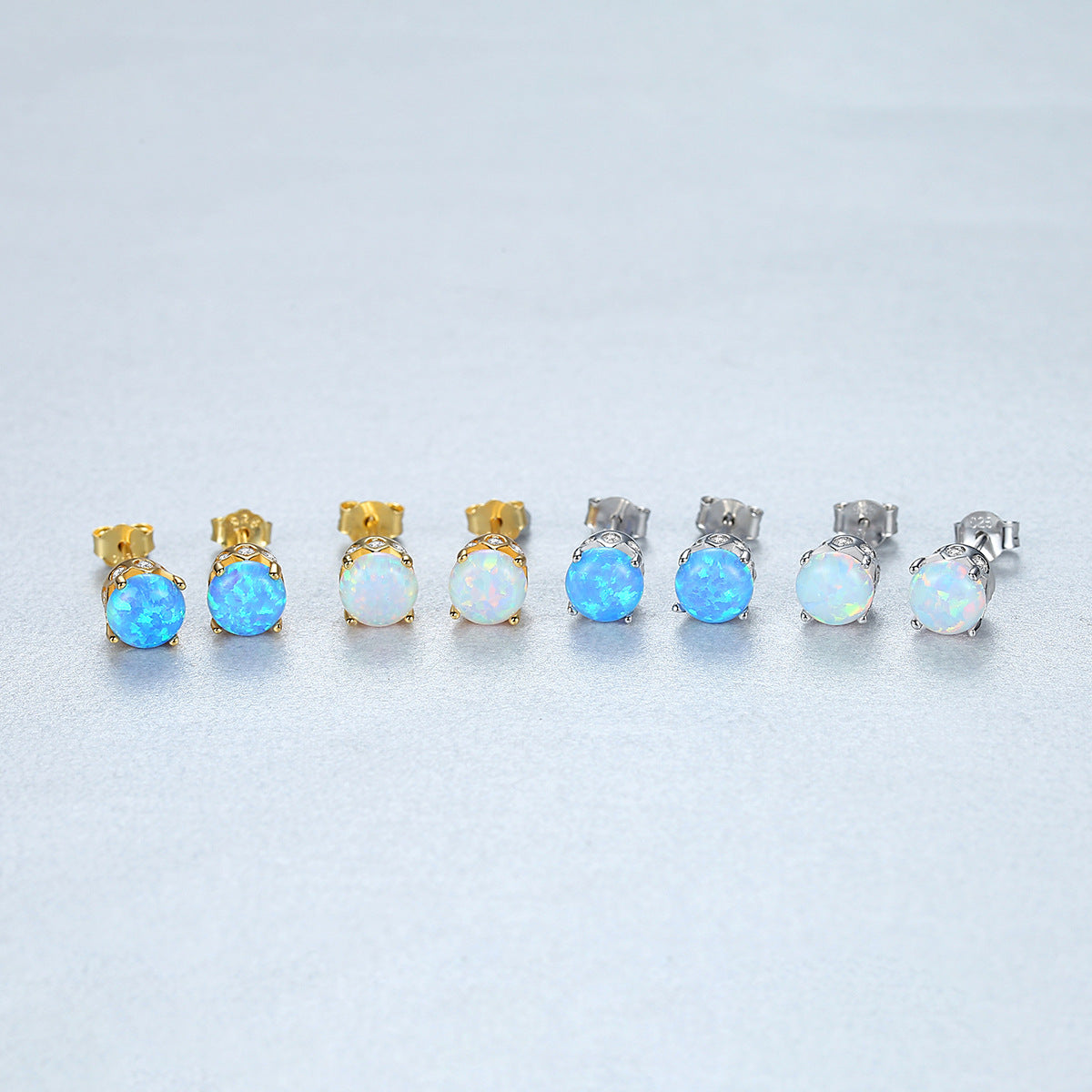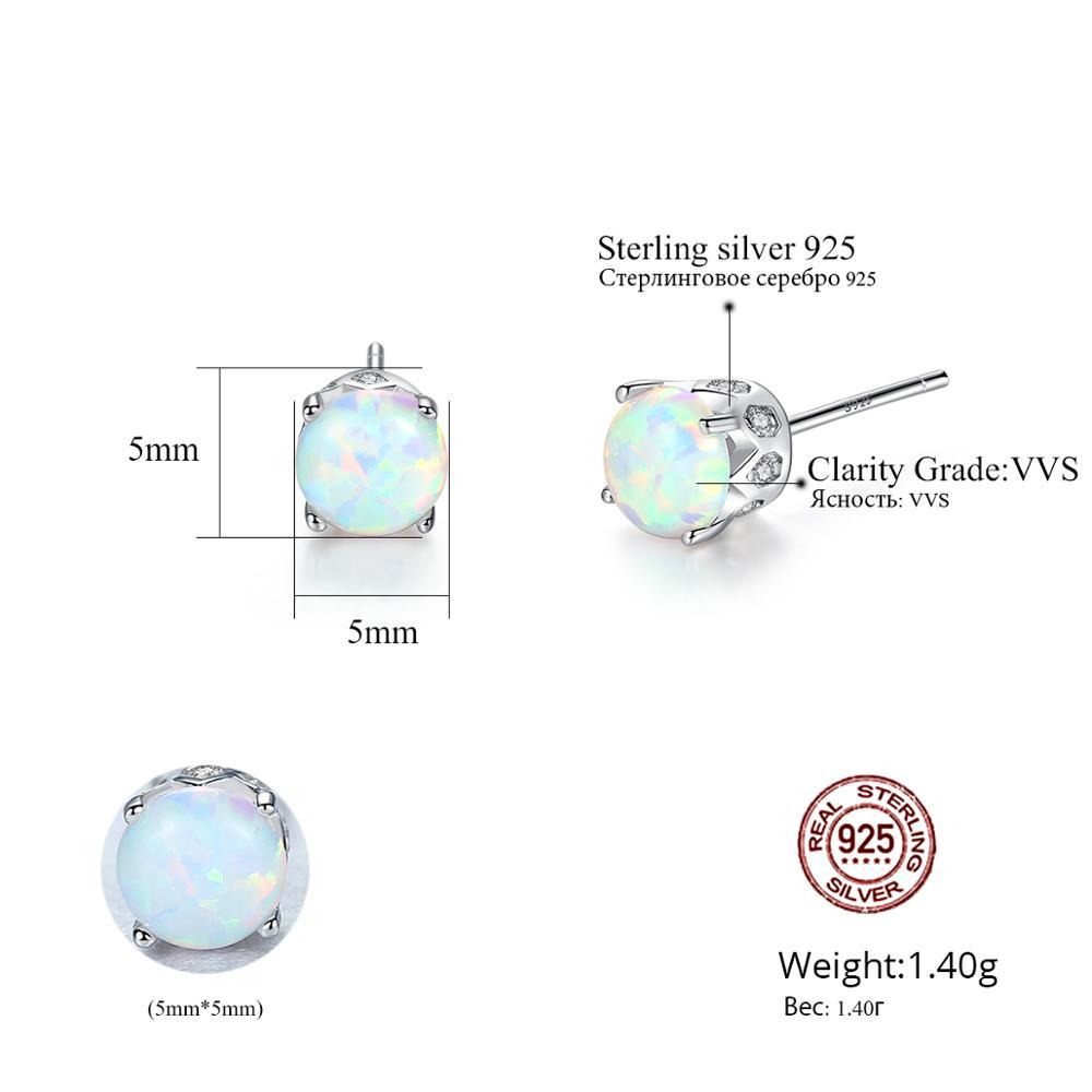 Aetolia 925 Sterling Silver Opal Earrings CZ Diamond 4 Prong Ball Opal Stud Earrings SE0278