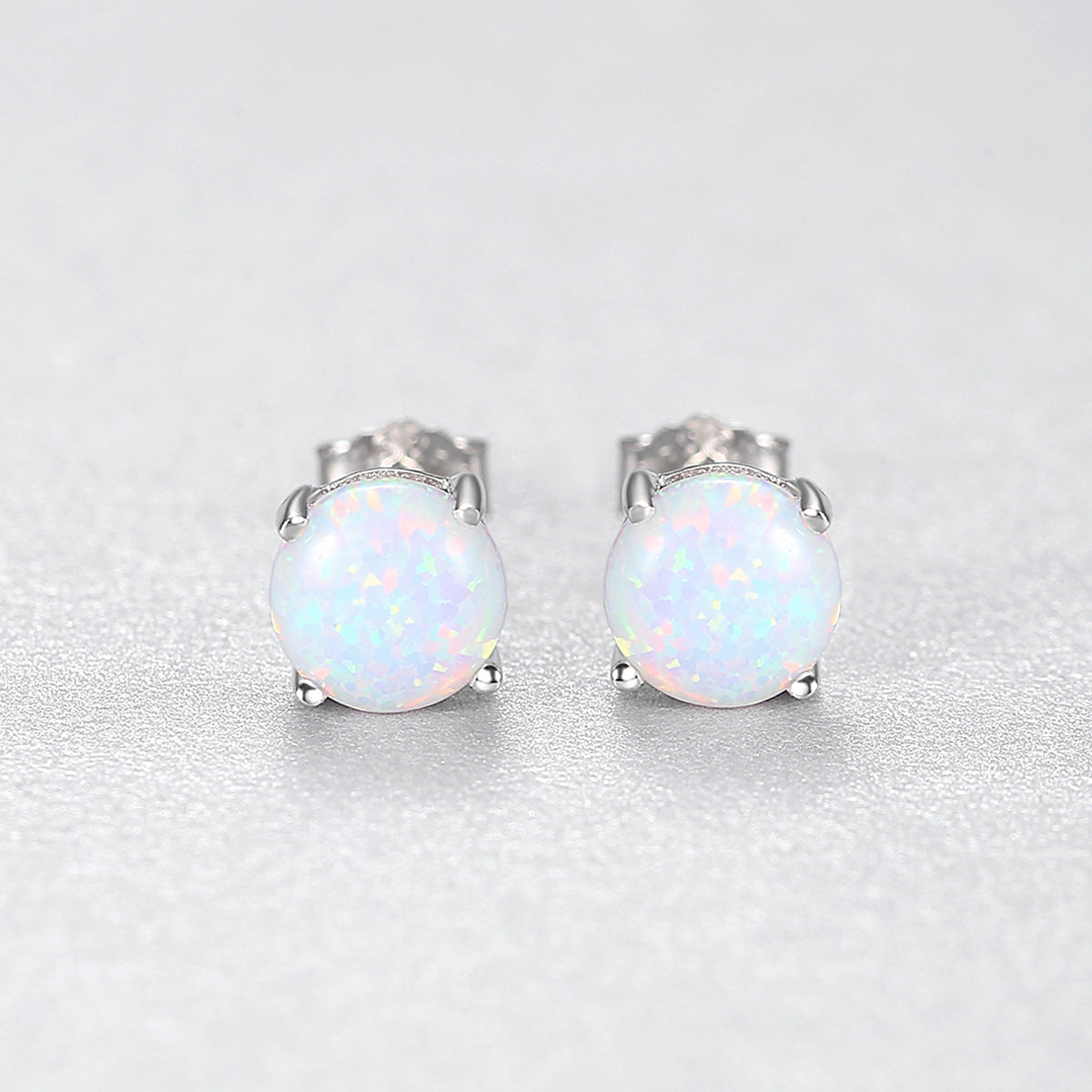 Aetolia 925 Sterling Silver Opal Earrings Fashion Four prongs Round Opal Stud Earrings SE0239