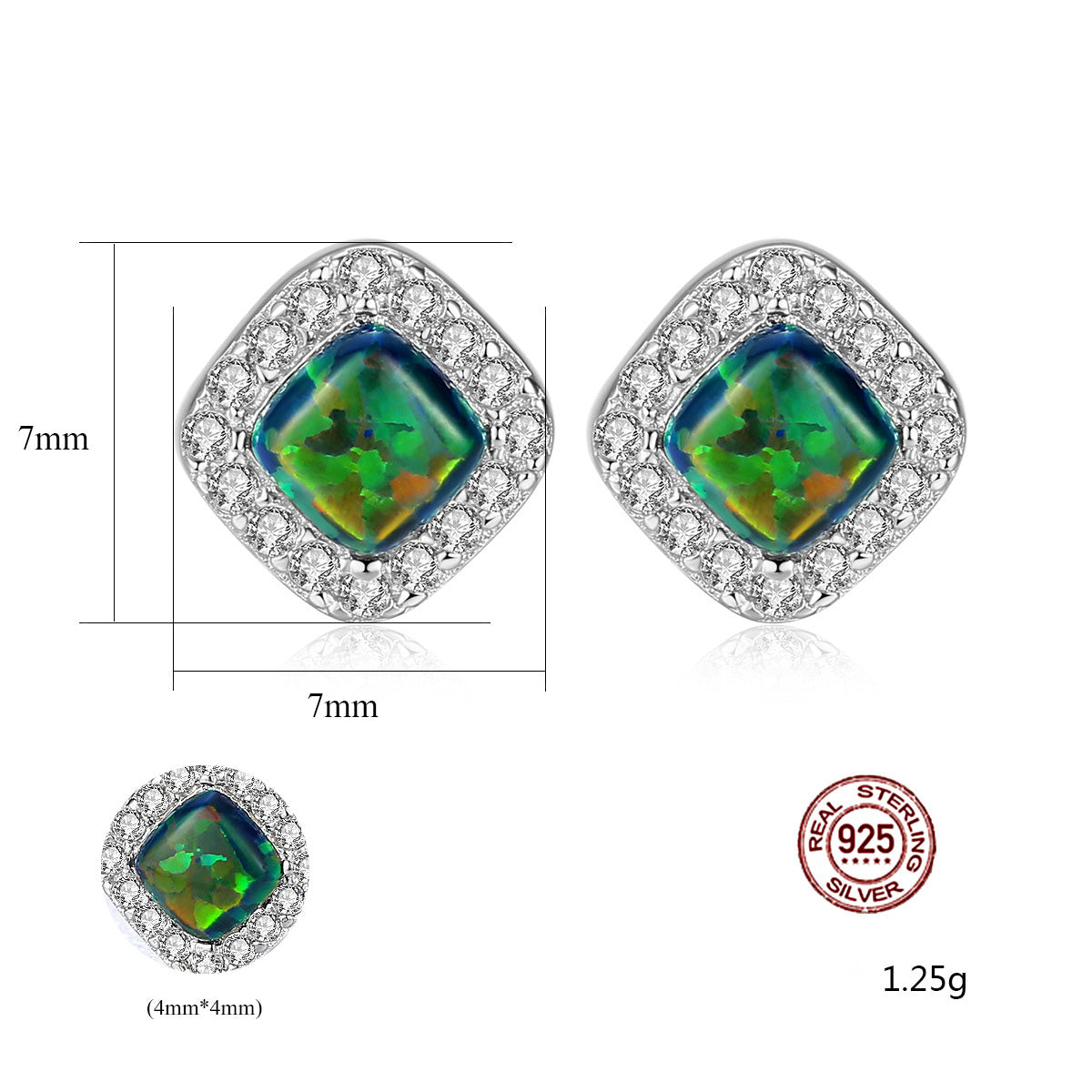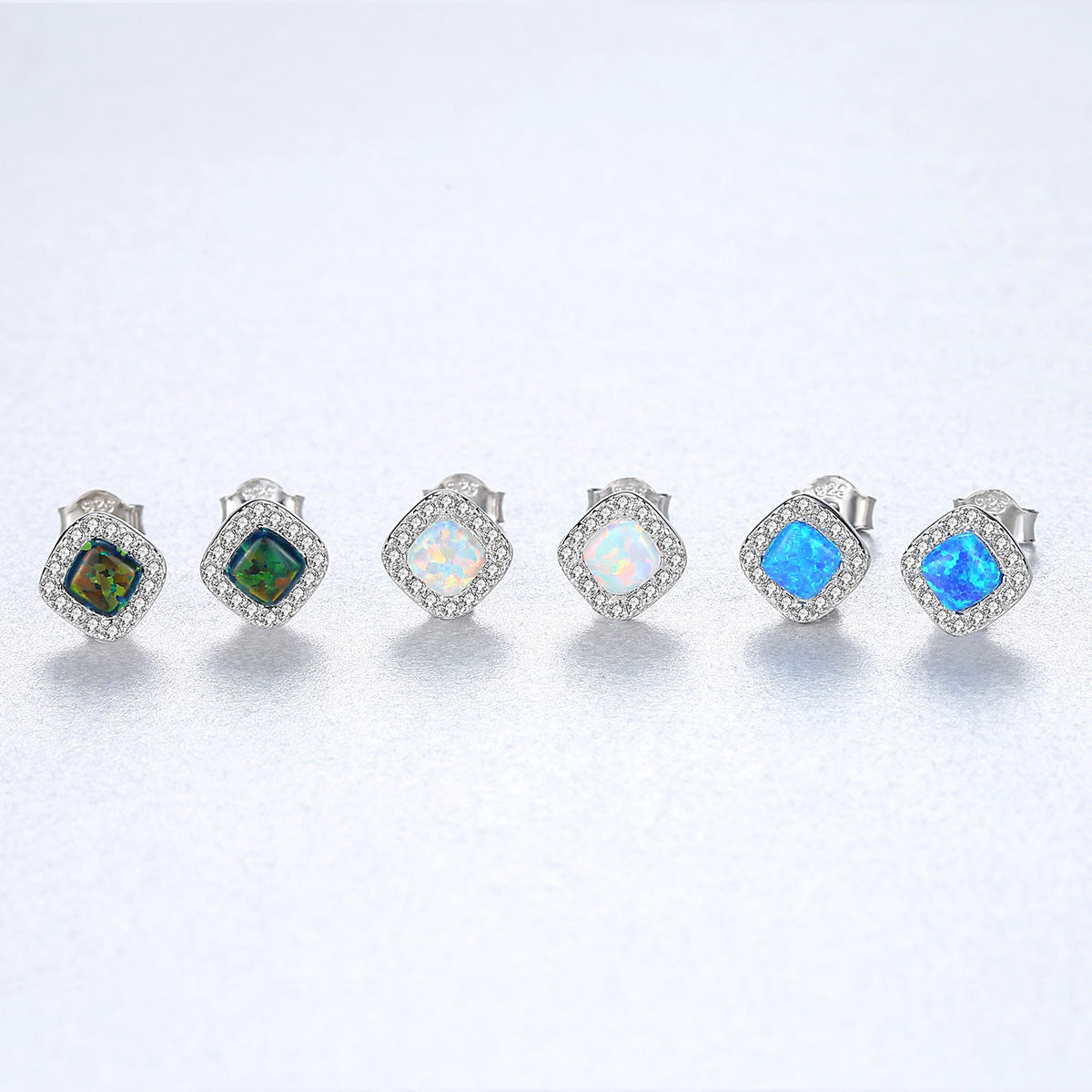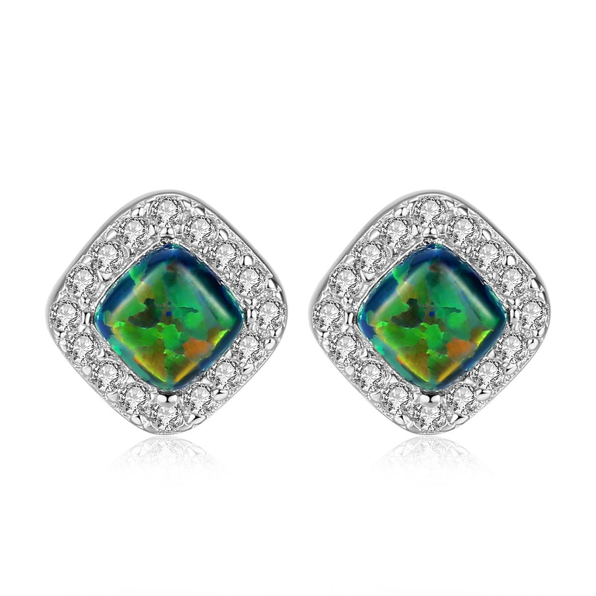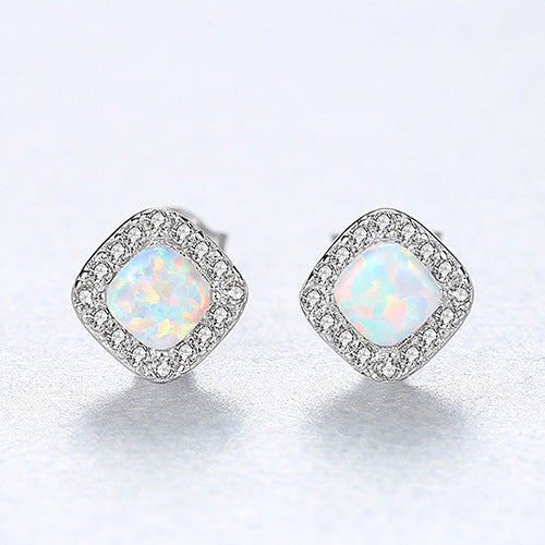 Aetolia 925 Sterling Silver Opal Earrings Halo CZ Diamond Square Opal Stud Earrings SE0238