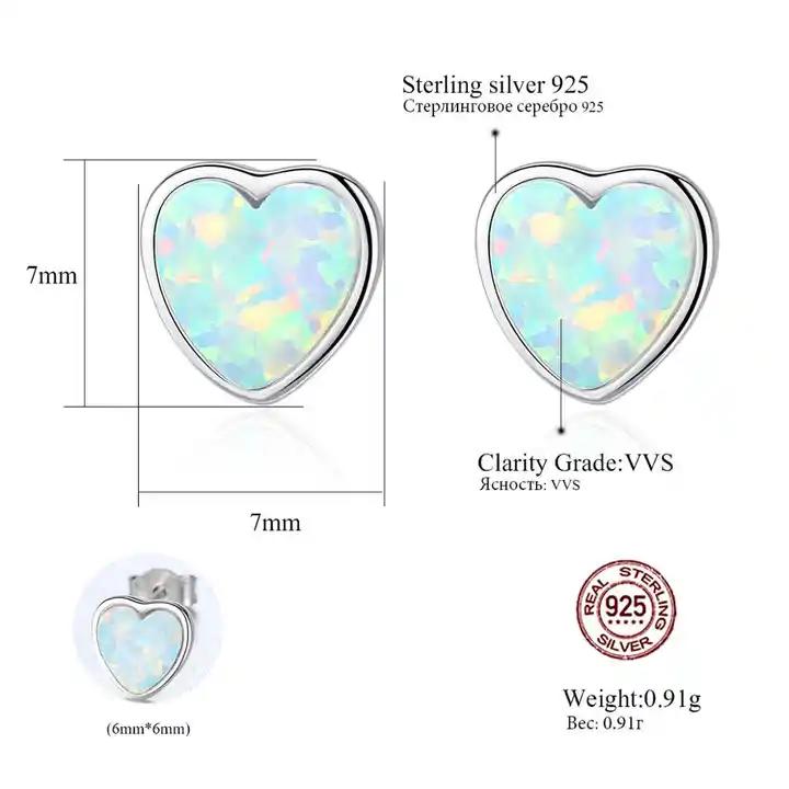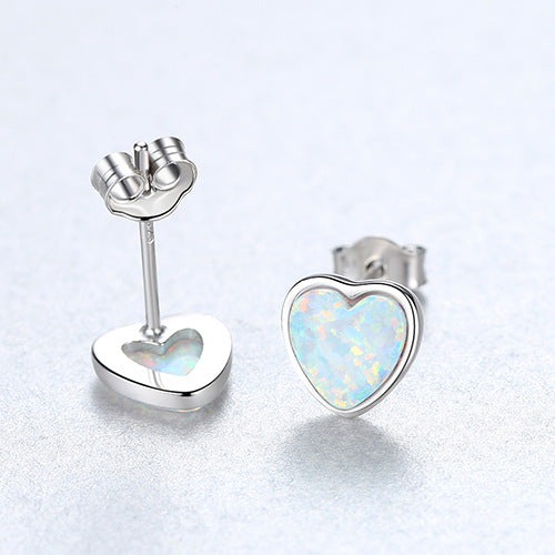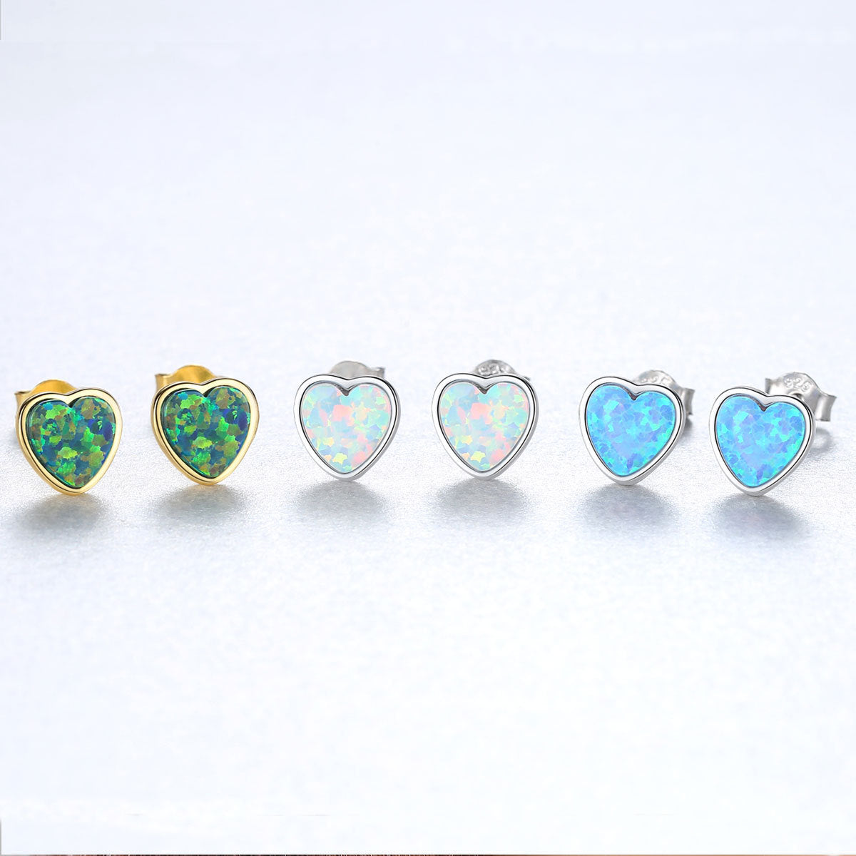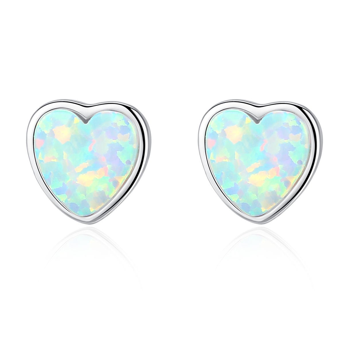 Aetolia 925 Sterling Silver Opal Earrings Love Heart Bezel Set Opal Stud Earrings SE0318