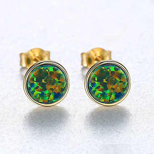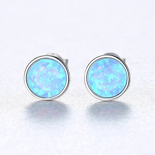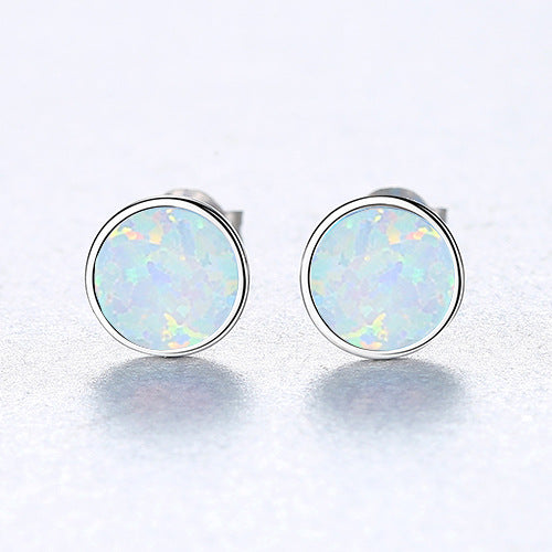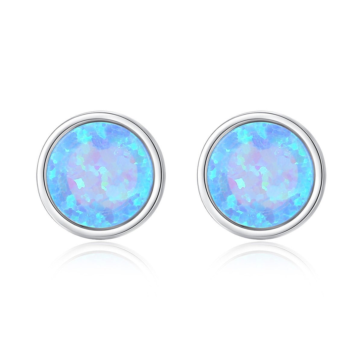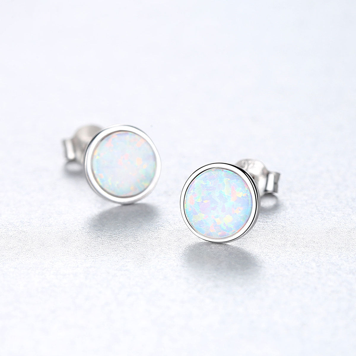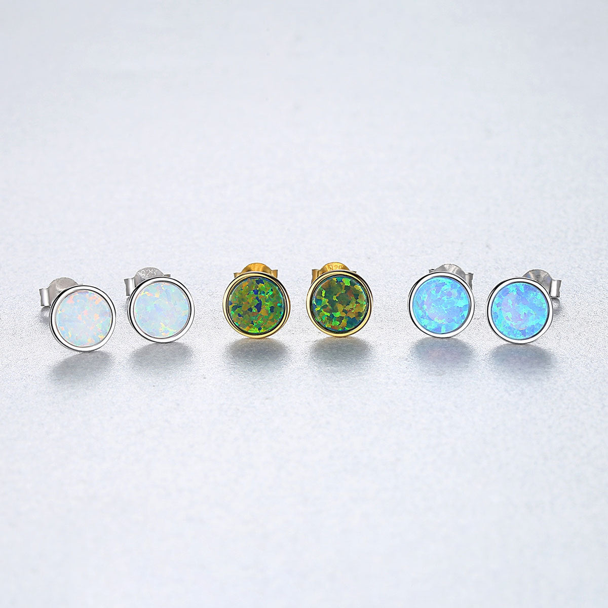 Aetolia 925 Sterling Silver Opal Earrings Simple Bezel Set Opal Stud Earrings SE0319