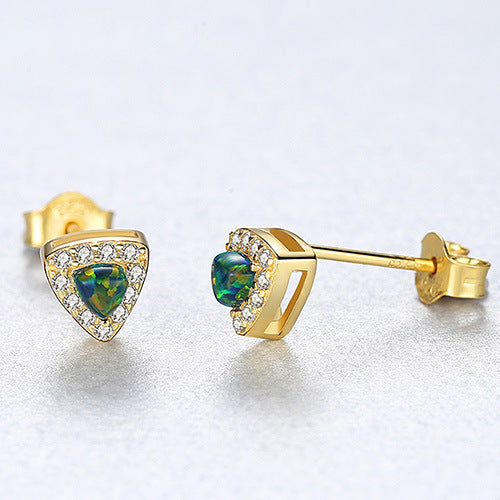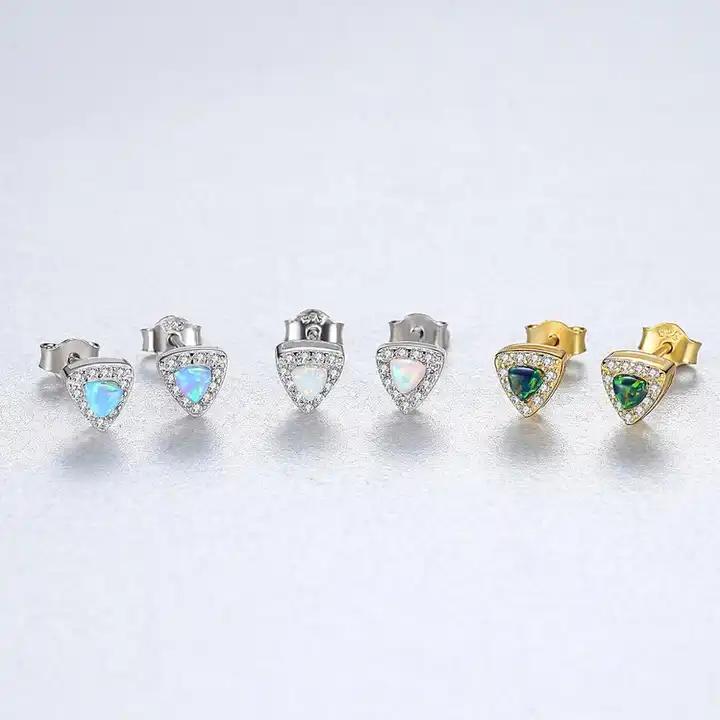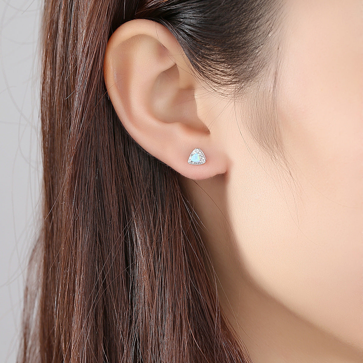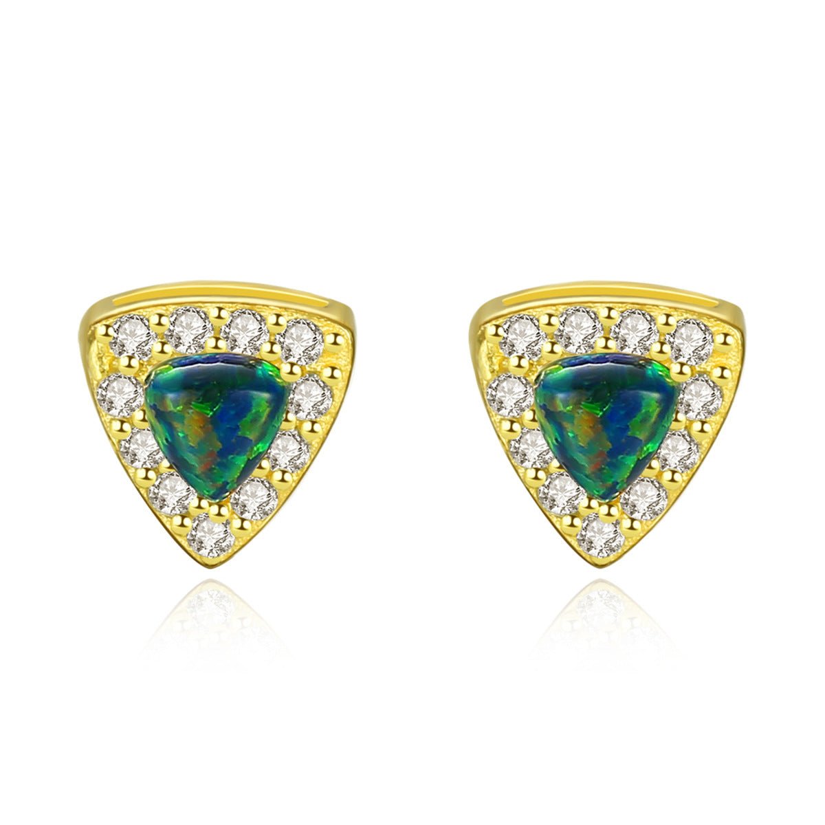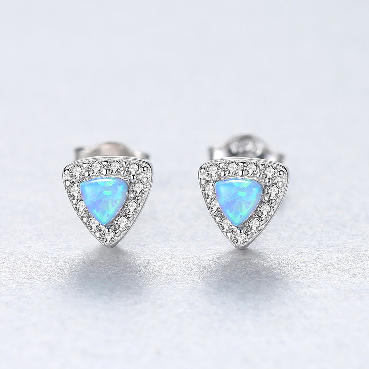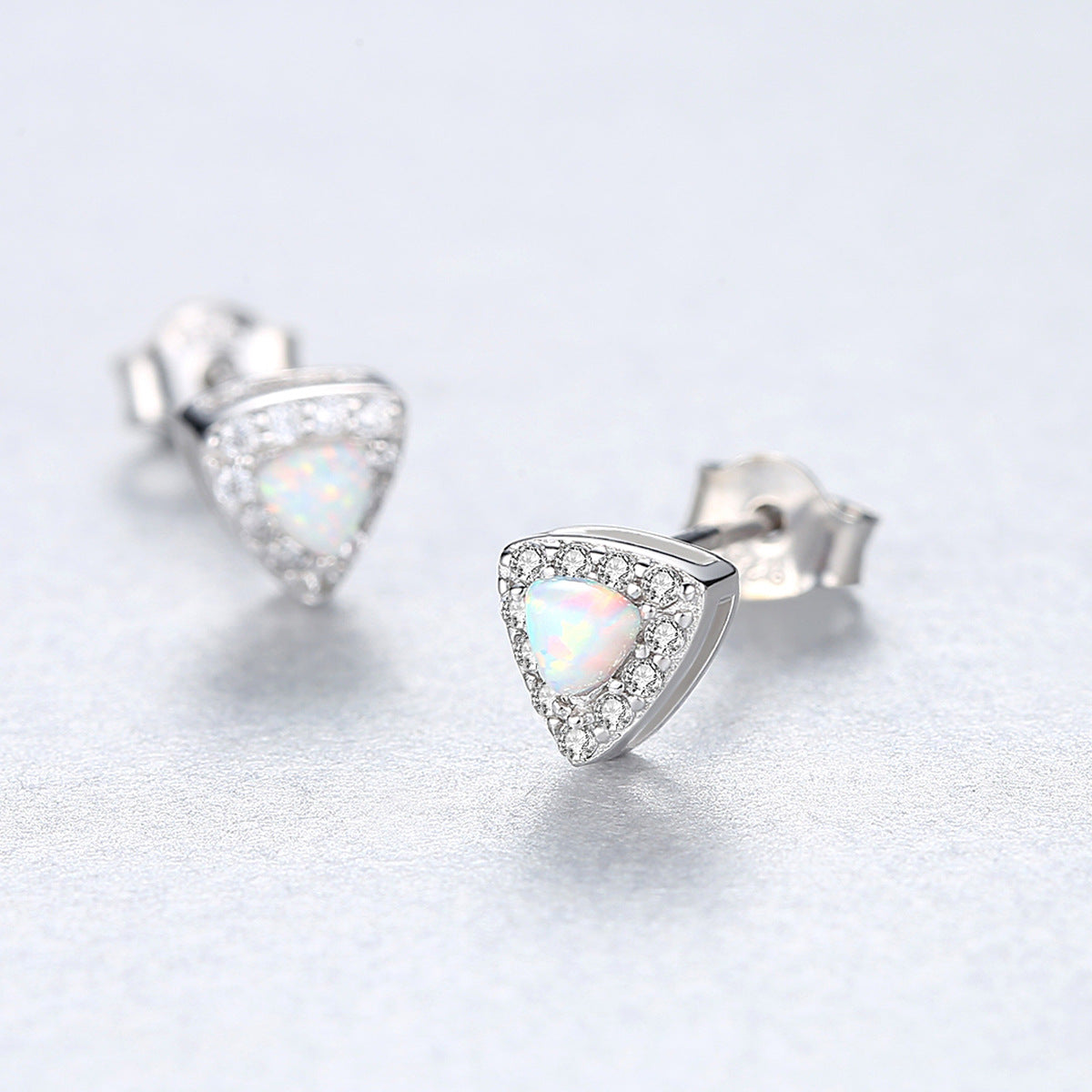 Aetolia 925 Sterling Silver Opal Earrings Triangle Halo CZ Diamond Opal Stud Earrings SE0232