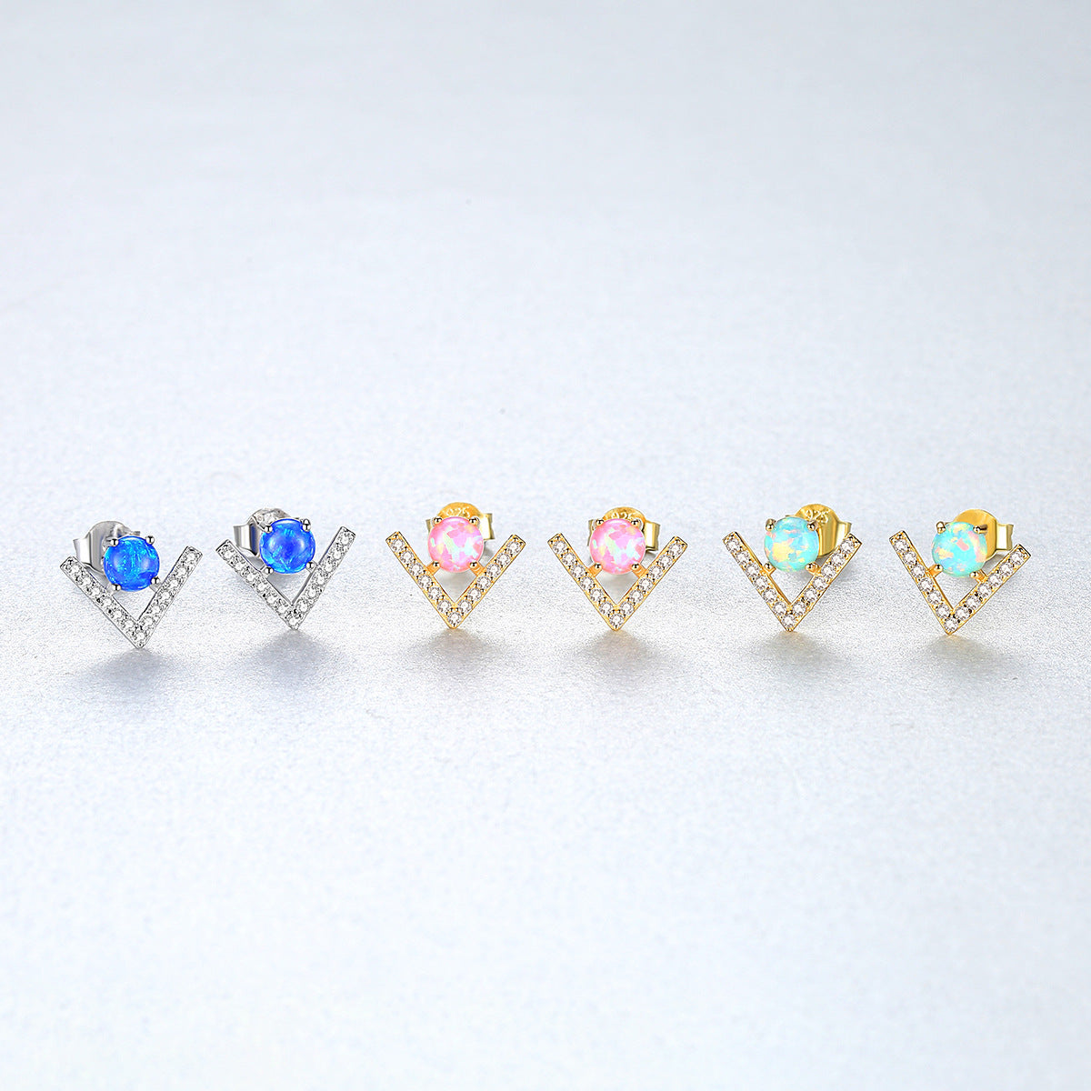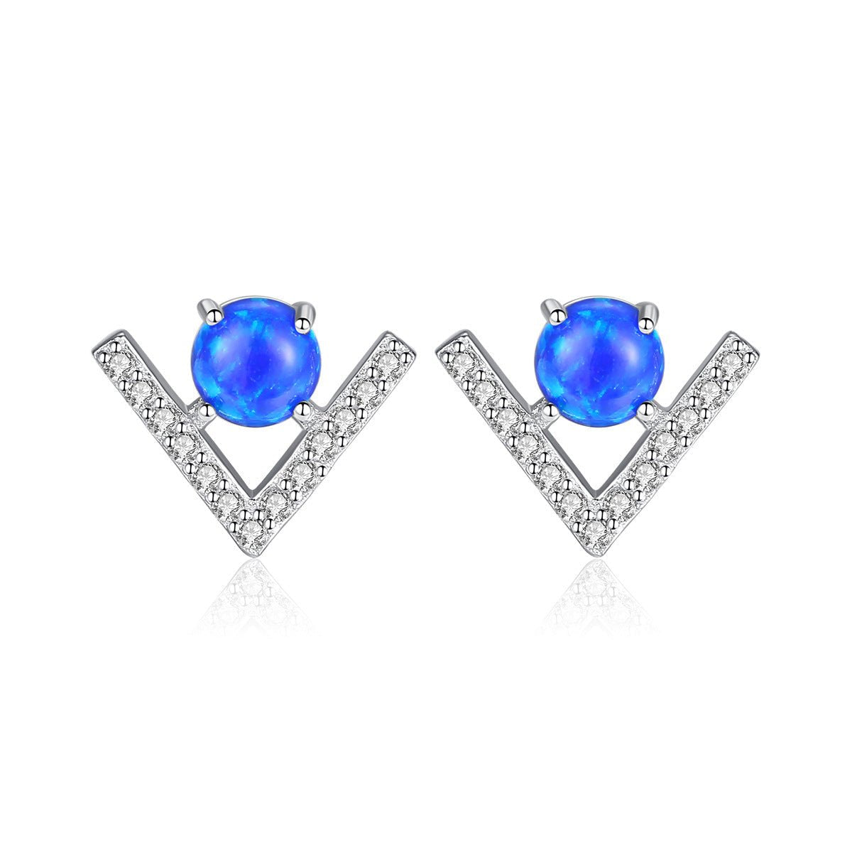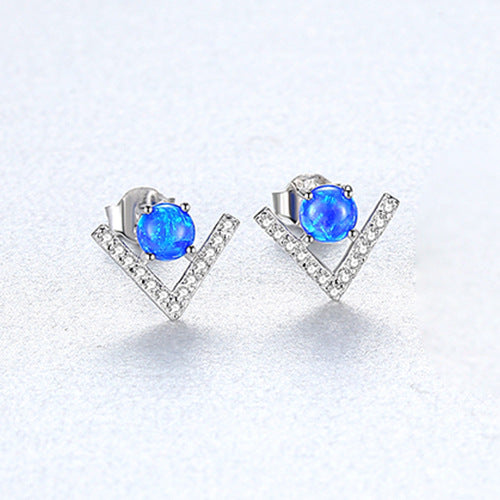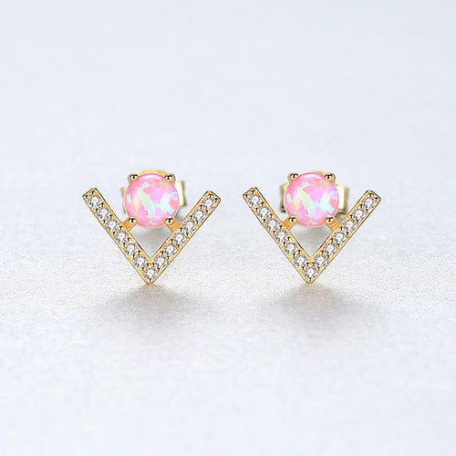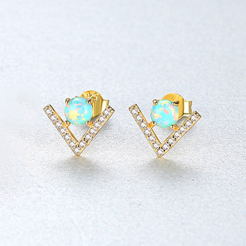 Aetolia 925 Sterling Silver Opal Earrings Unique V Shaped Fire Opal Stud Earrings SE0430