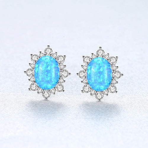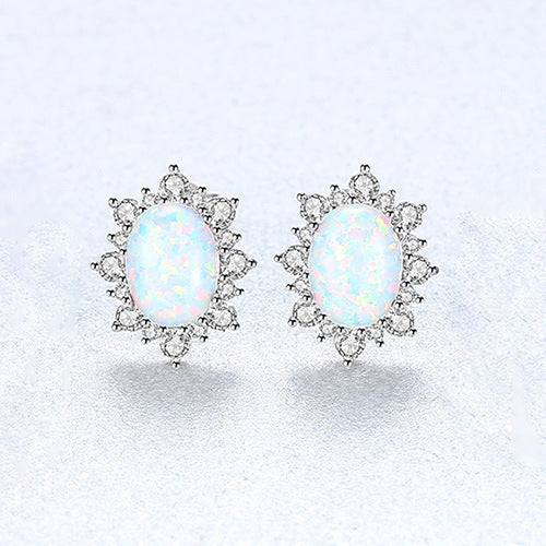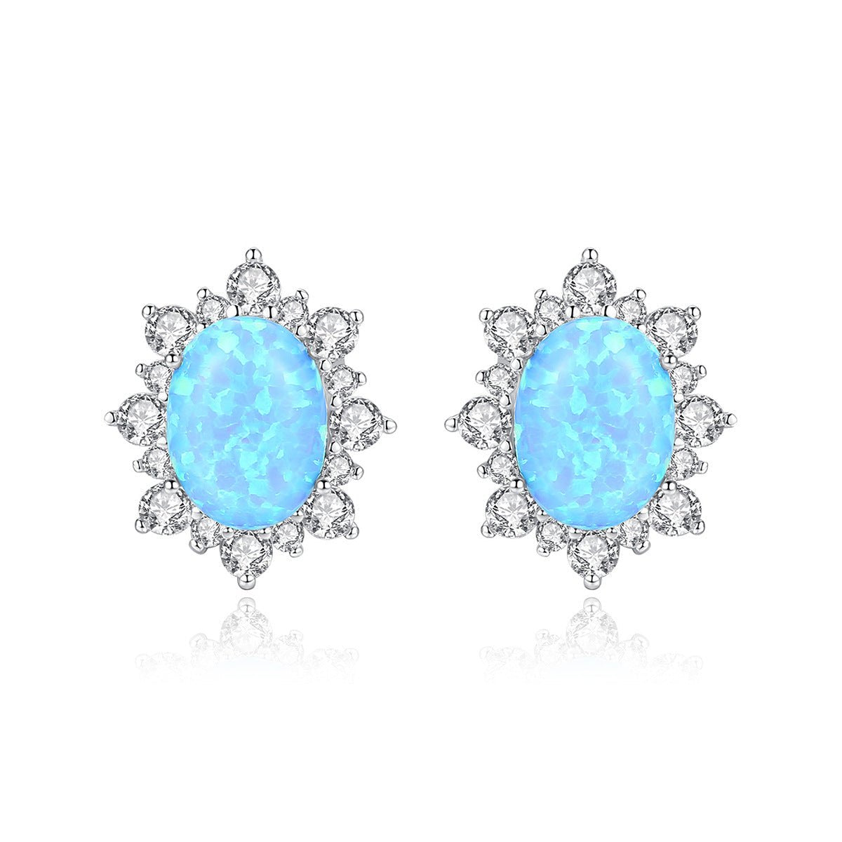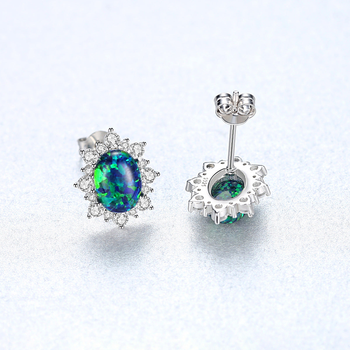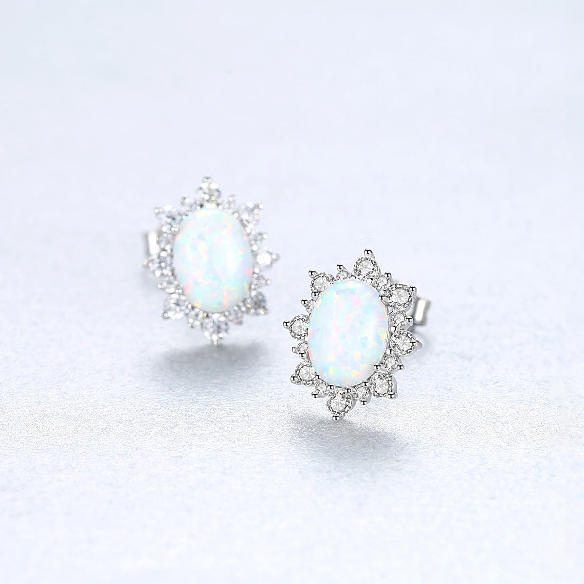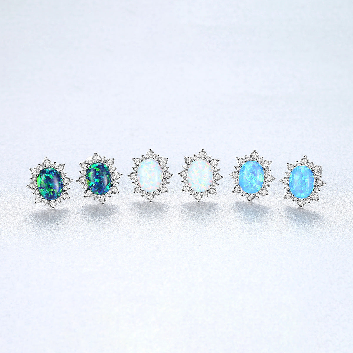 Aetolia 925 Sterling Silver Opal Earrings Vintage Flower CZ Diamond Oval Opal Stud Earrings SE0276
