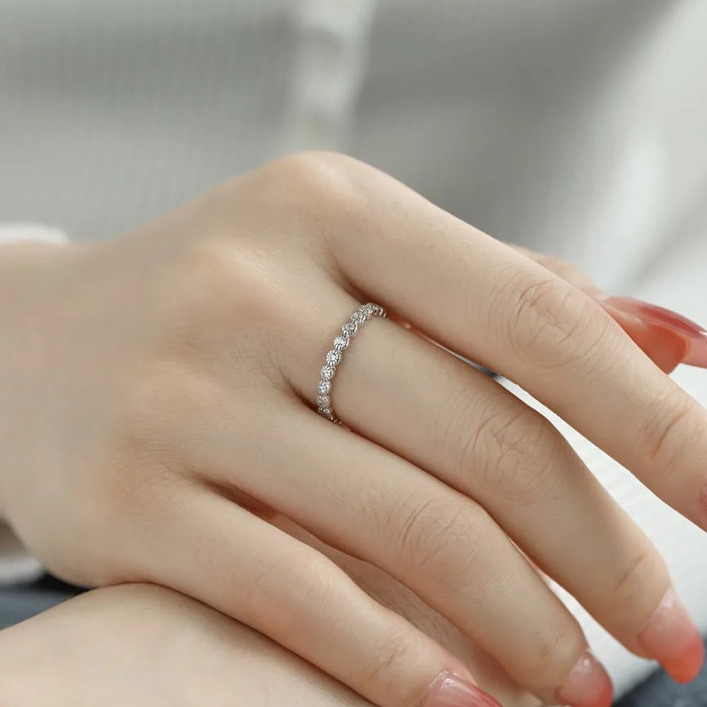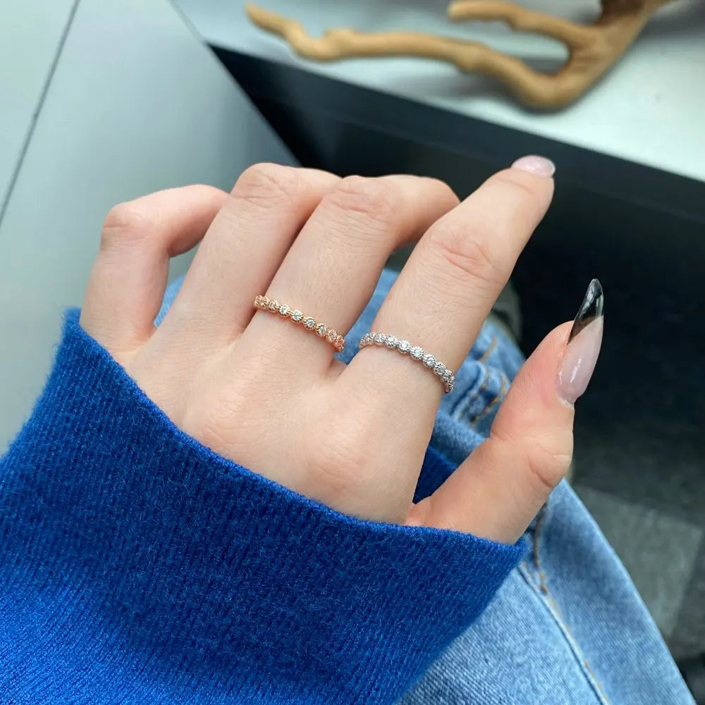 Aetolia 925 Sterling Silver Romantic Wedding Band For Women Cz Cubic Zirconia Full Eternity Stackable 18K Rose Gold Ring For Girl Gift