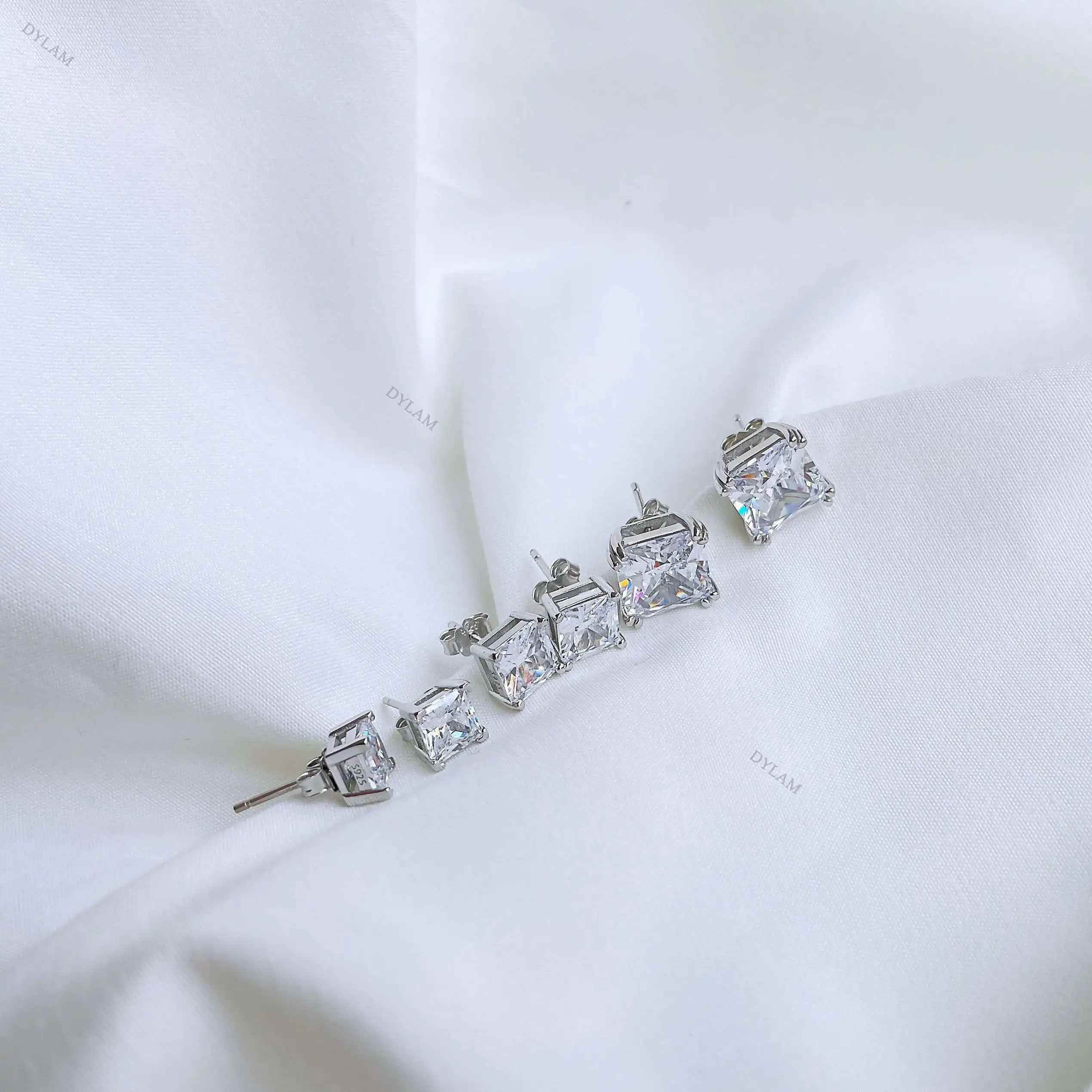 Aetolia 100% Silver S925 stud earrings square 5A zircons for women wedding