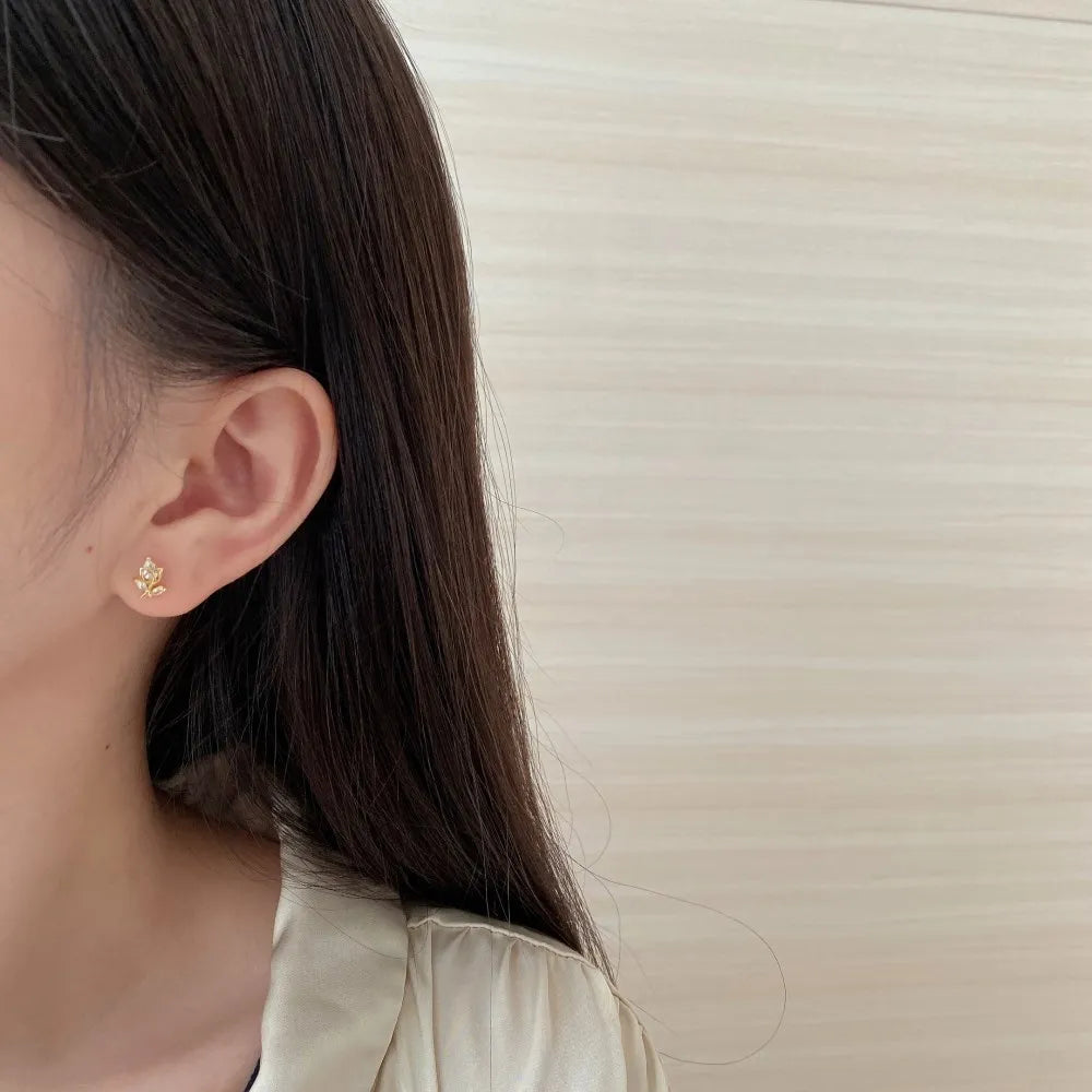 Aetolia 14K Gold Plated Rose Flower Ear Studs Earring Dainty Magnolia Flower Earring Leaf Hypoallergenic Earrings for Women