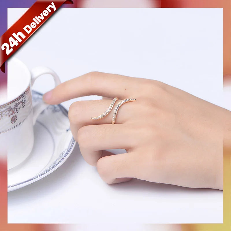 Aetolia Stylish Fashion Couple Jewelry Irregular Rose Gold Adjustable Silver 925 Open Rings Wedding Zircon Ring for Women
