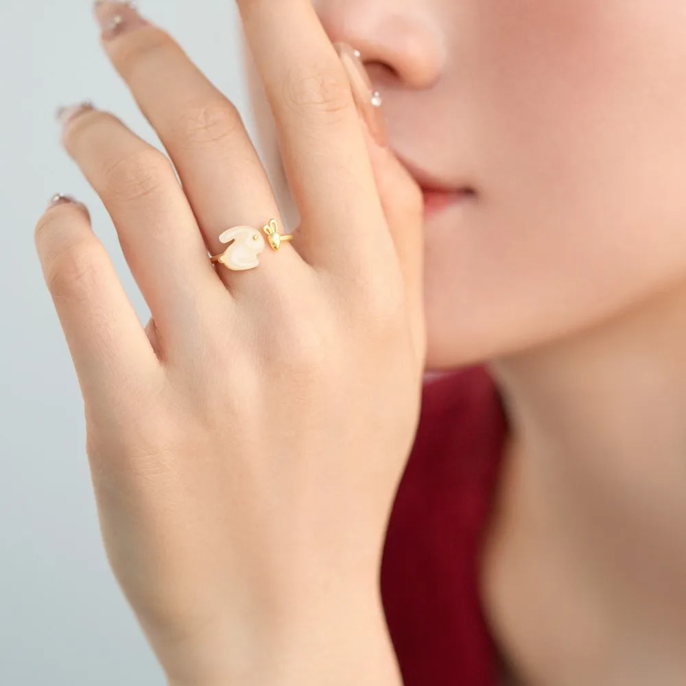 Aetolia New Year Unique Design Ins 925 Sterling Silver Ring Animal Rabbit Shape Engagement Finger Rings For Women Jewelry