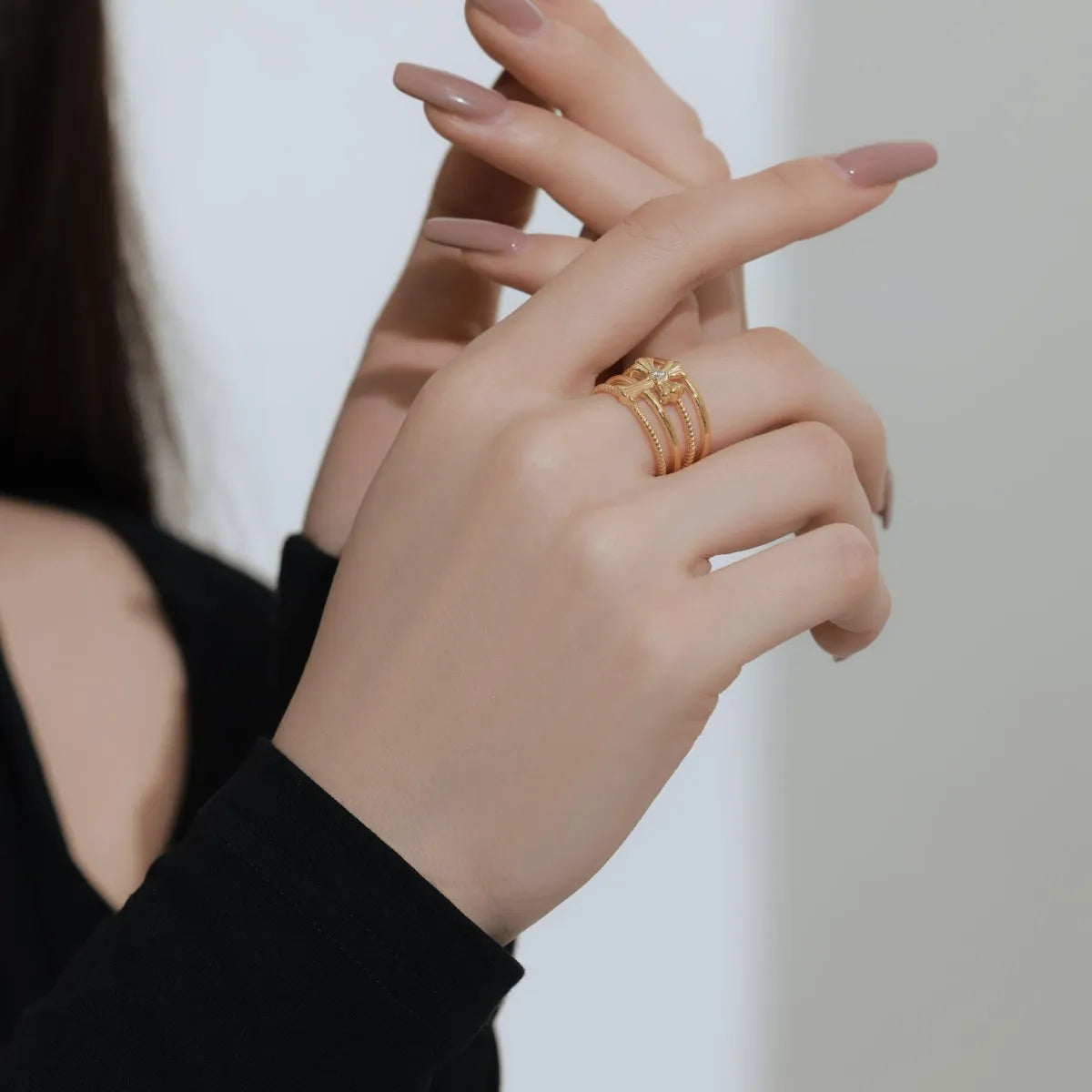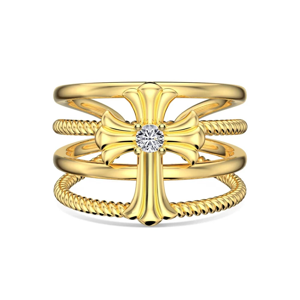 Aetolia Customization18K Gold Plated Ring Diamond Cz Cubic Zirconia Cross Multi-Layer Ring Retro S925 Silver Rings For Women