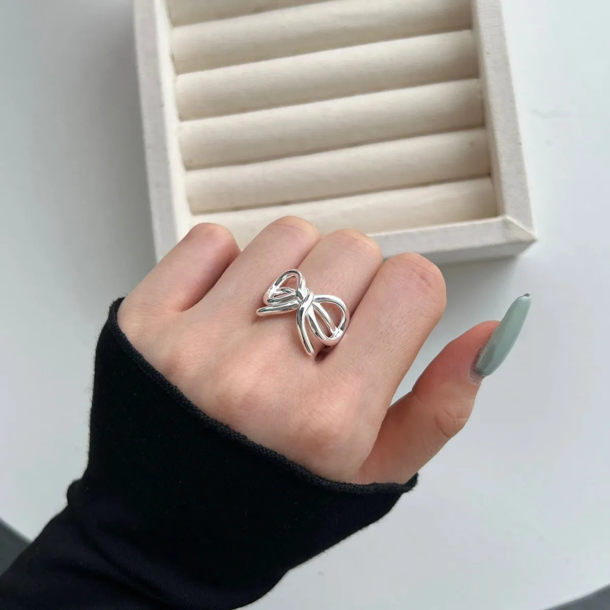 Aetolia New Design Bowknot Shape Rings For Women Open S925 Sterling Silver Ring Earring Necklace Jewelry Set Wholesale Gifts