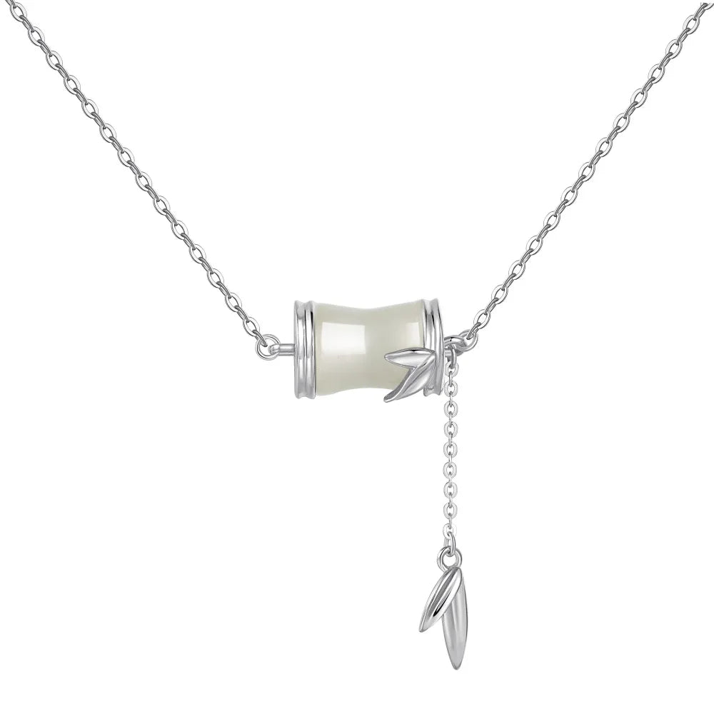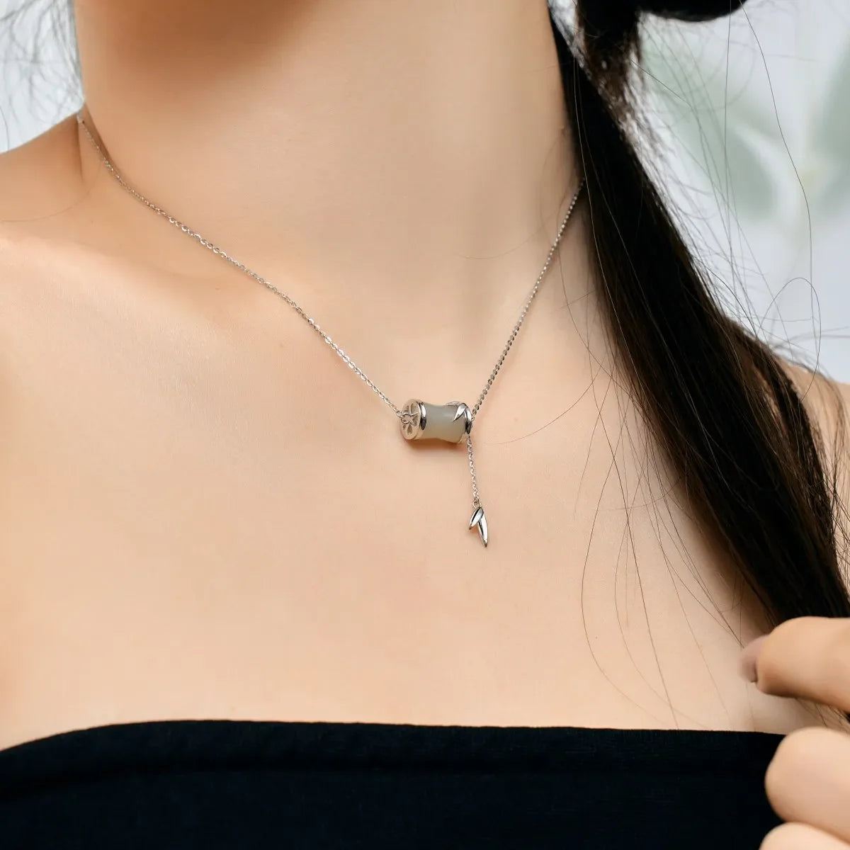 Aetolia 22K Gold Plated S925 Sterling Silver Jewelry Necklace Women Girls Bamboo Shape Hetian Jade Pendant Necklaces Bracelets Set