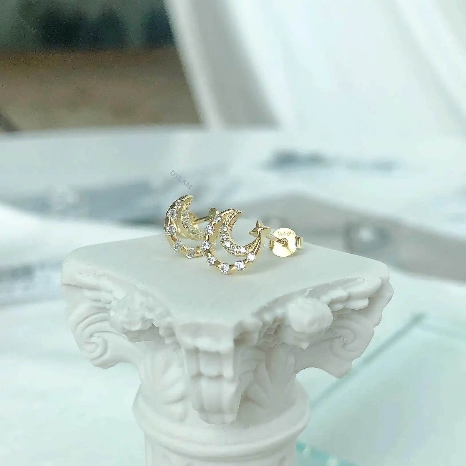 Aetolia 5A 18k hollow moon earring minimalist 925 sterling silver women fashion gold statement stud earrings
