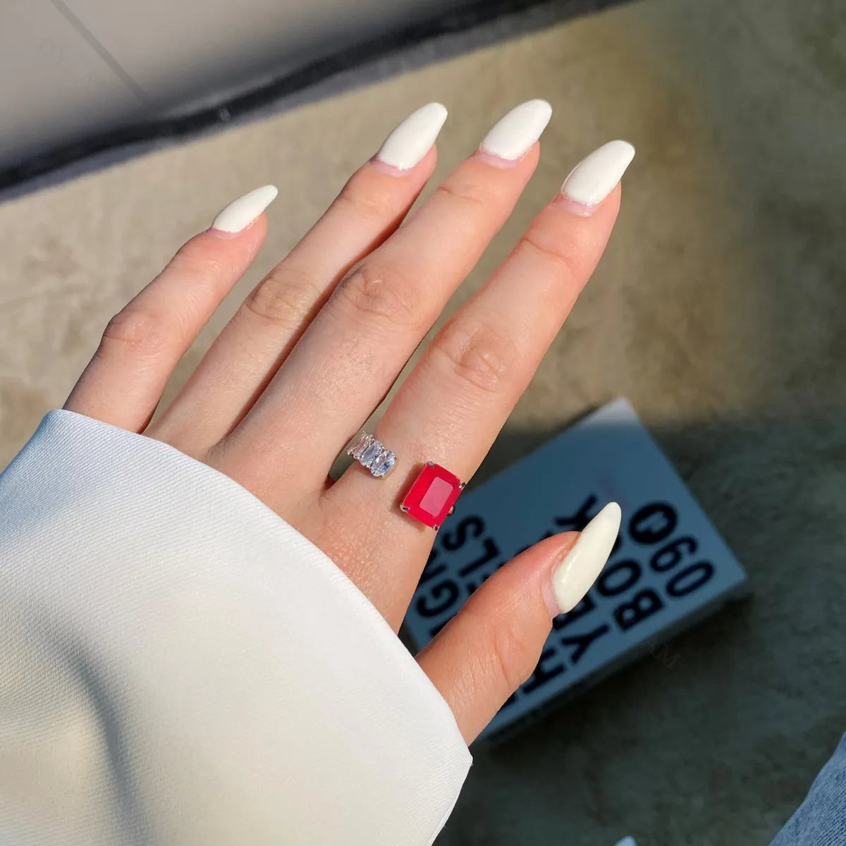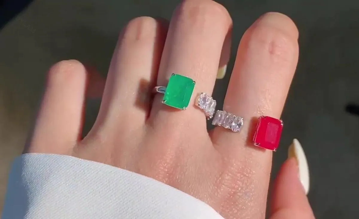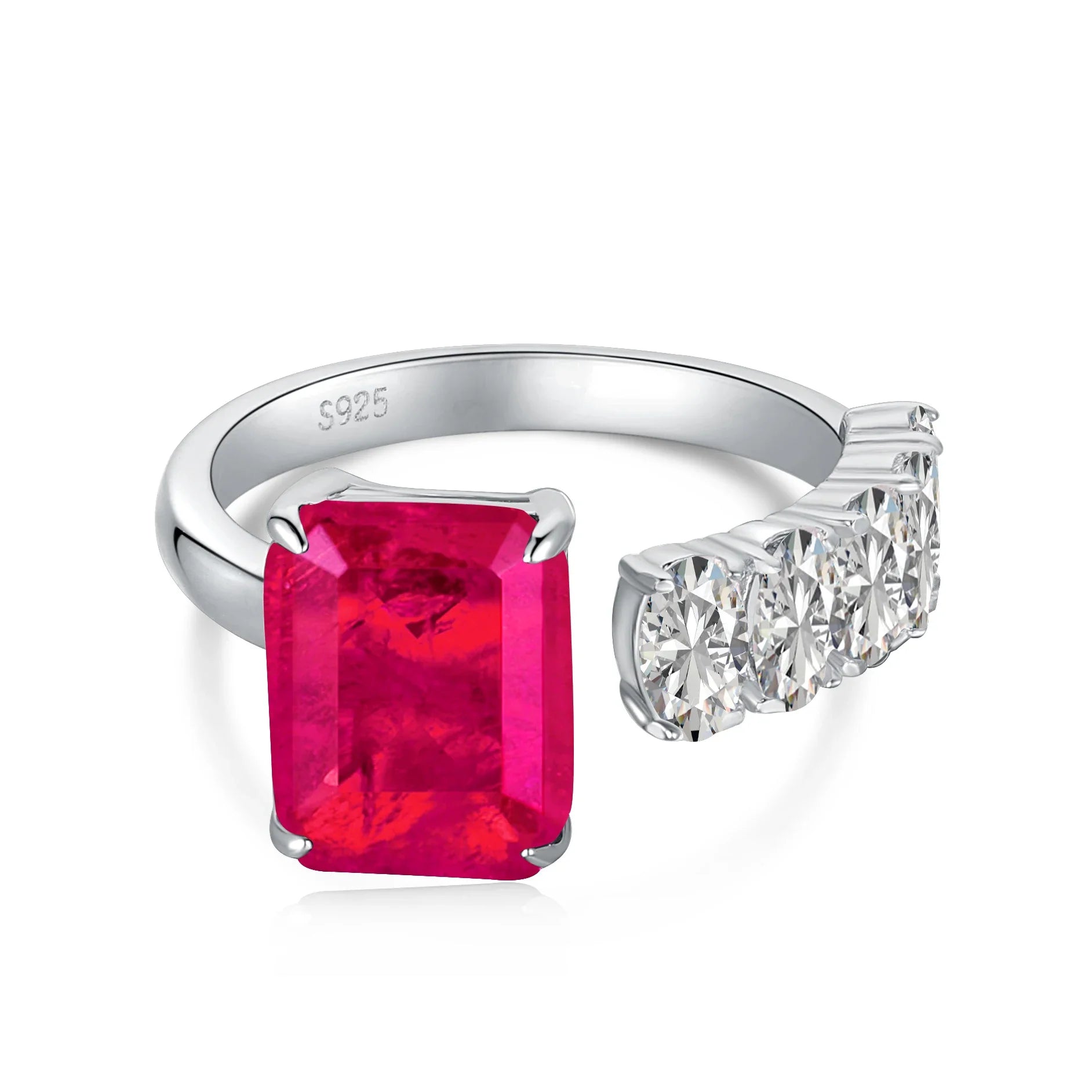 Aetolia 5A Zirconia Adjustable 925 Sterling Silver Rings Emerald Red Gemstone Ring Jewelry Real Cz Cubic Zircon Green Stone Women