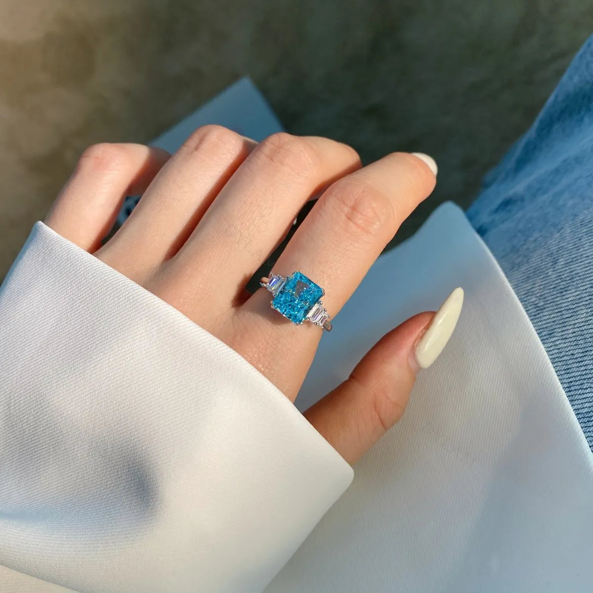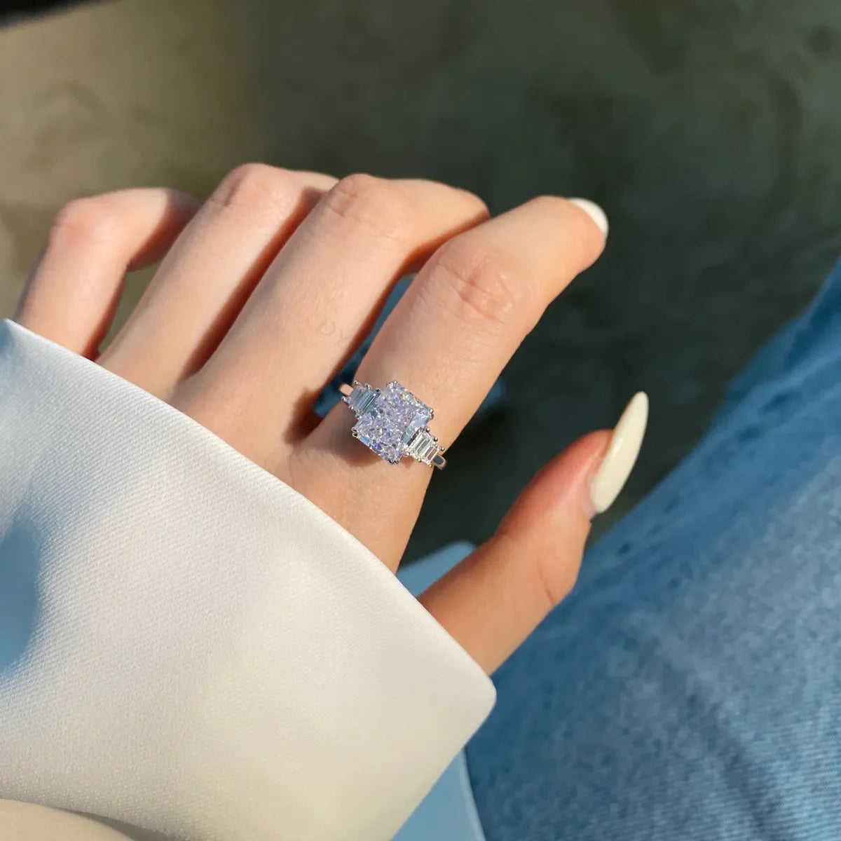 Aetolia 8A Zirconia Classic Silver Rings With Love Square Fashion Crystal Diamond Wedding Party Wide Ring For Women Jewelry