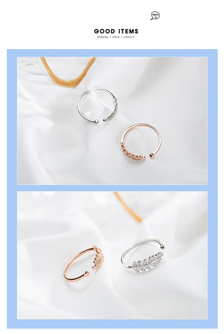 Aetolia 925 Silver Women Sterling Rings High Quality Open Dainty Adjustable Resizable Gold Plated Trendy Leaf Ring