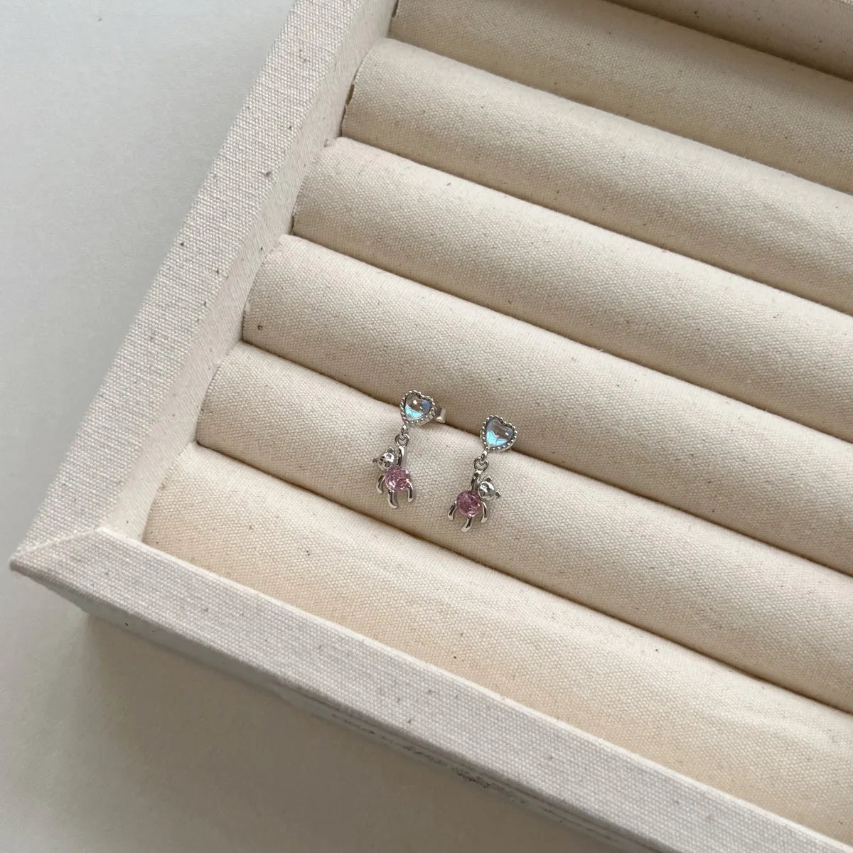 Aetolia 925 Sterling Silver Love Heart Pink Bear Round Bead Stud Earring Cz Zirconia Drop Earrings For Women Party Jewelry Gift