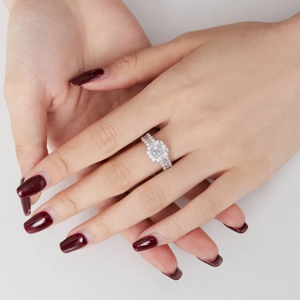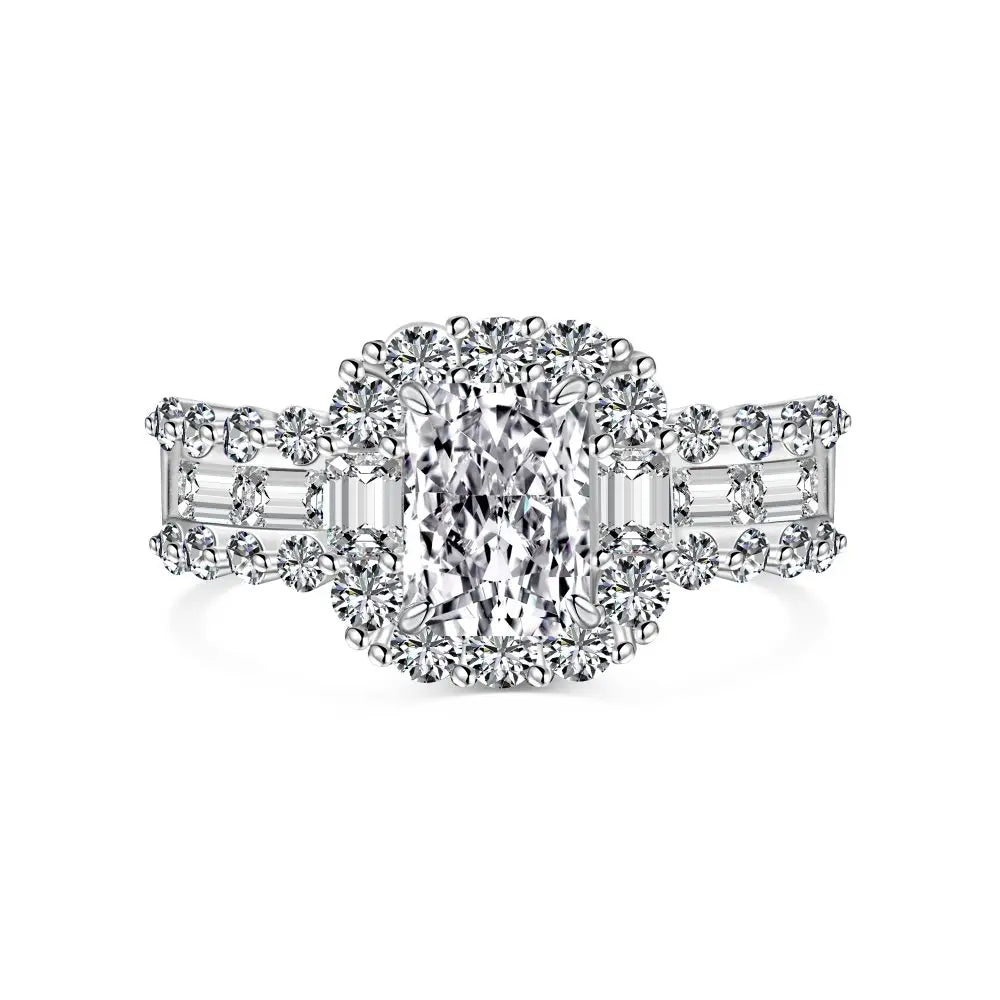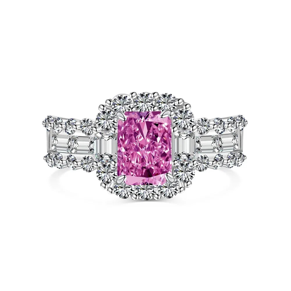 Aetolia 925 Sterling Silver Pink Cubic Zirconia Promise Square Cz Diamond Eternity Band Engagement Wedding Rings For Women