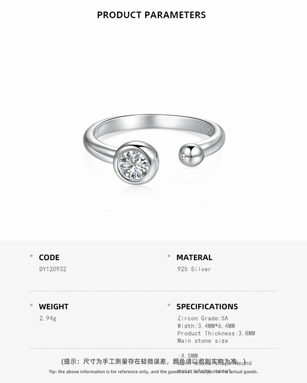 Aetolia Best Selling Trendy 925 Sterling Silver Ring Round Diamond Cz Cubic Zirconia Adjustable Open Rings For Women