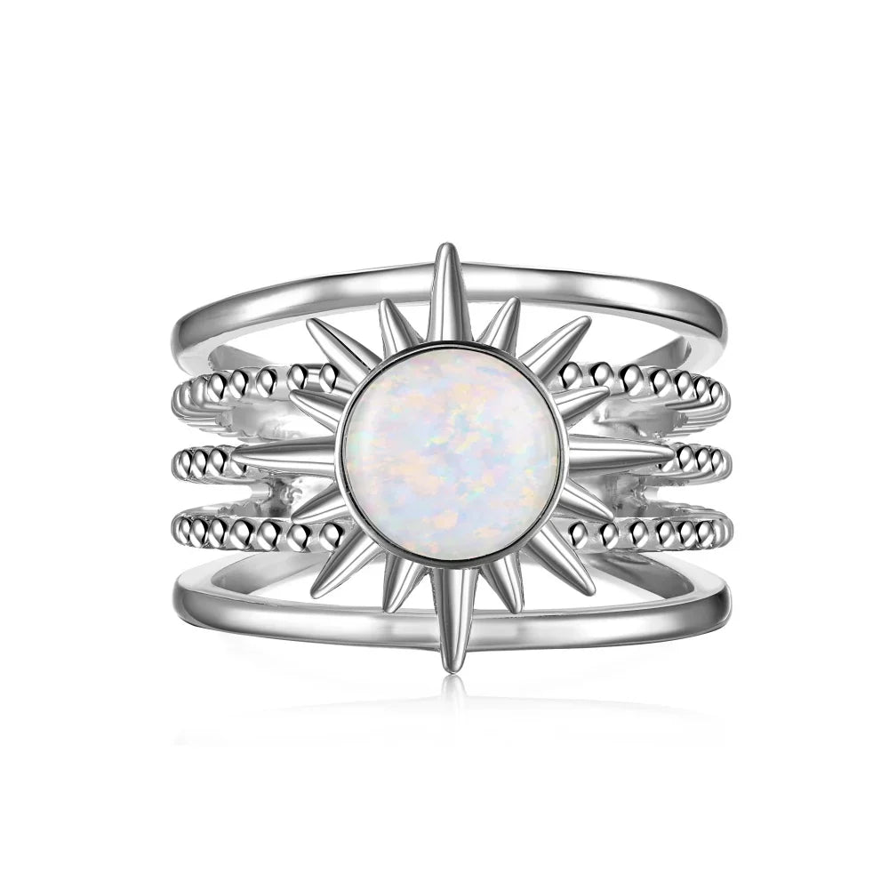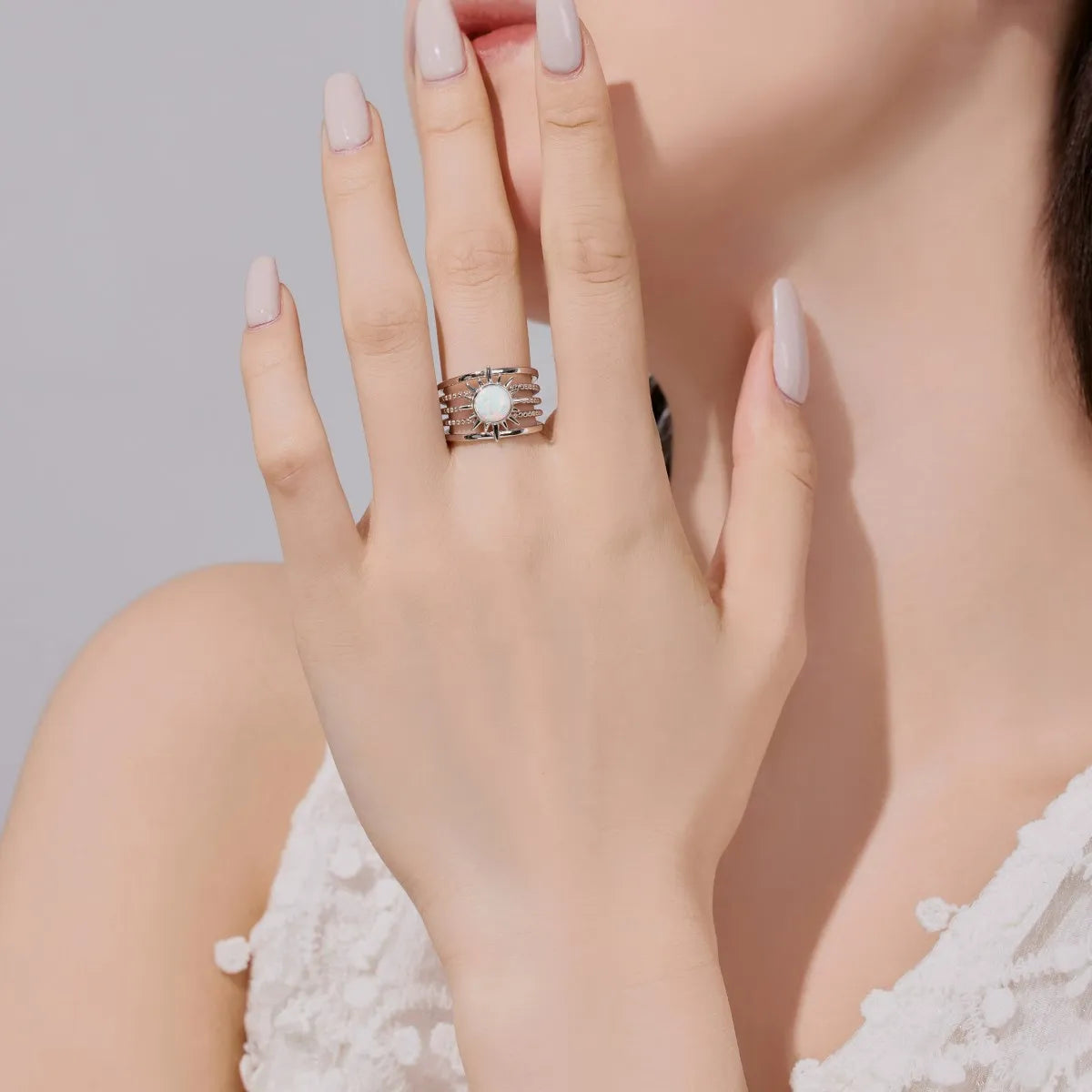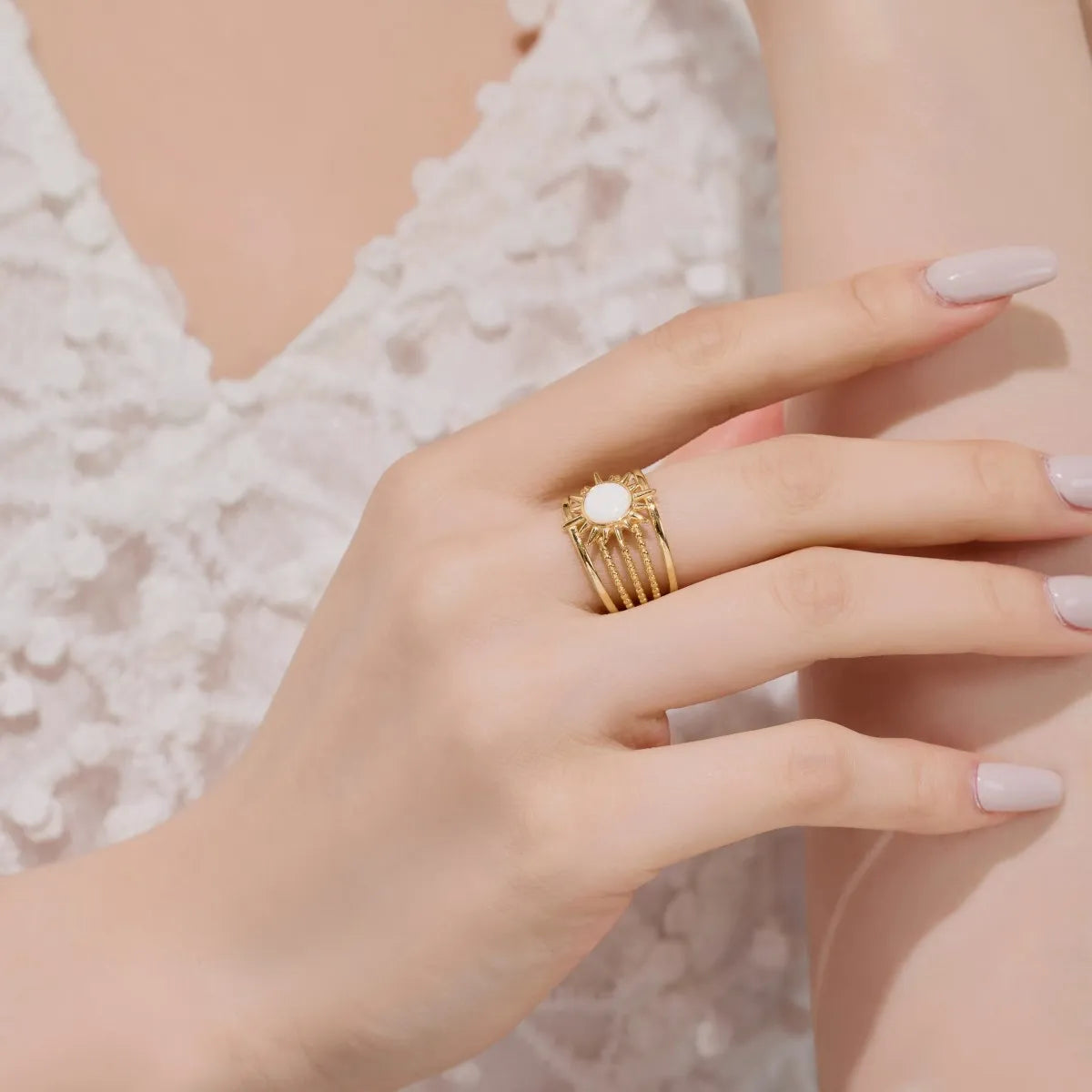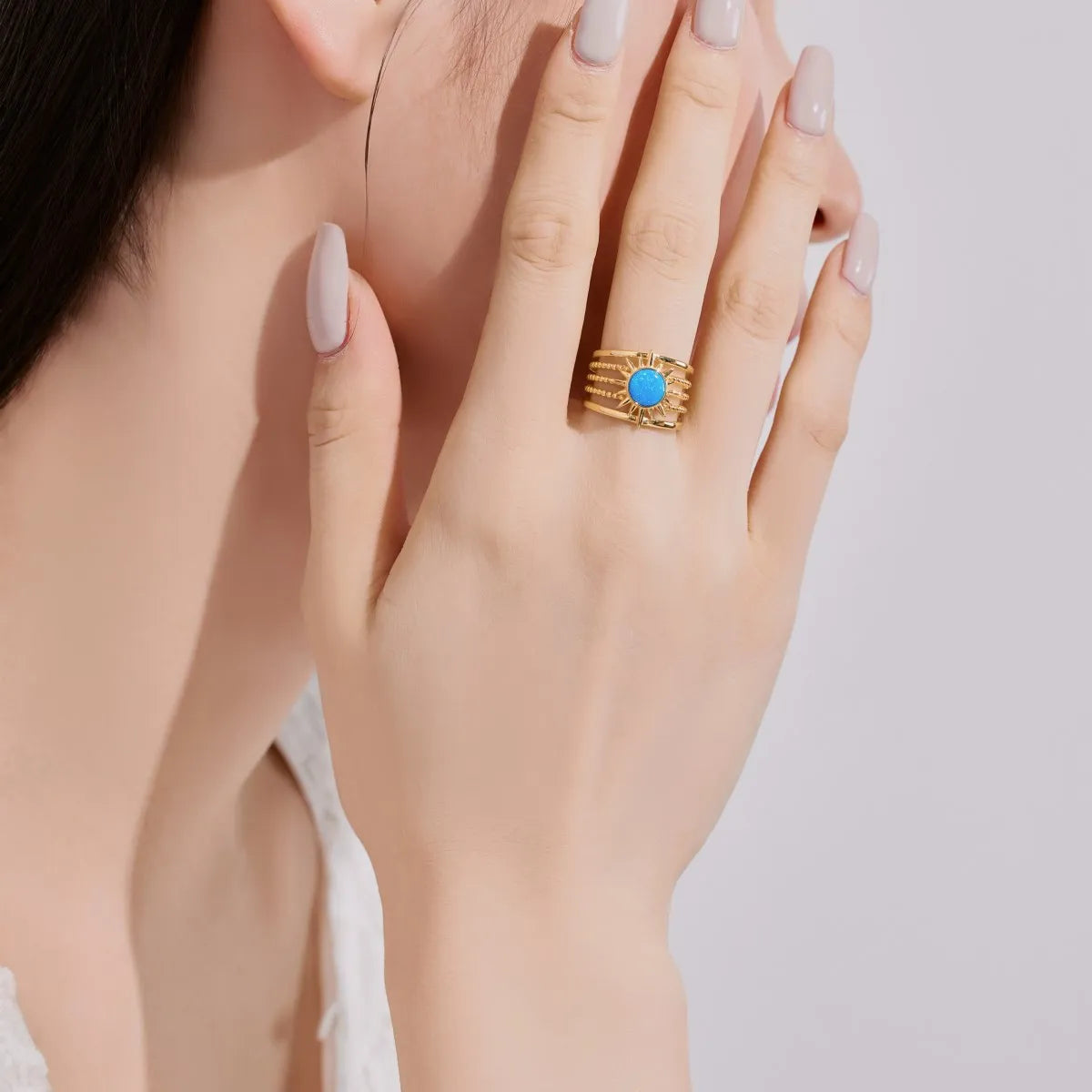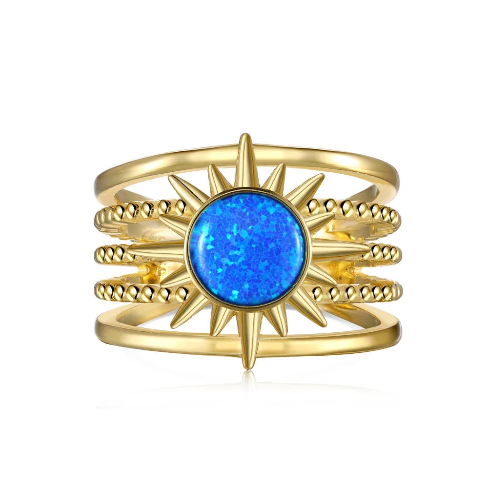 Aetolia Bijoux Femme 18K Gold Plated Open Adjustable Ring Multi-Layer S925 Silver Blue Opal Ring Oval Round Sun Rings For Women