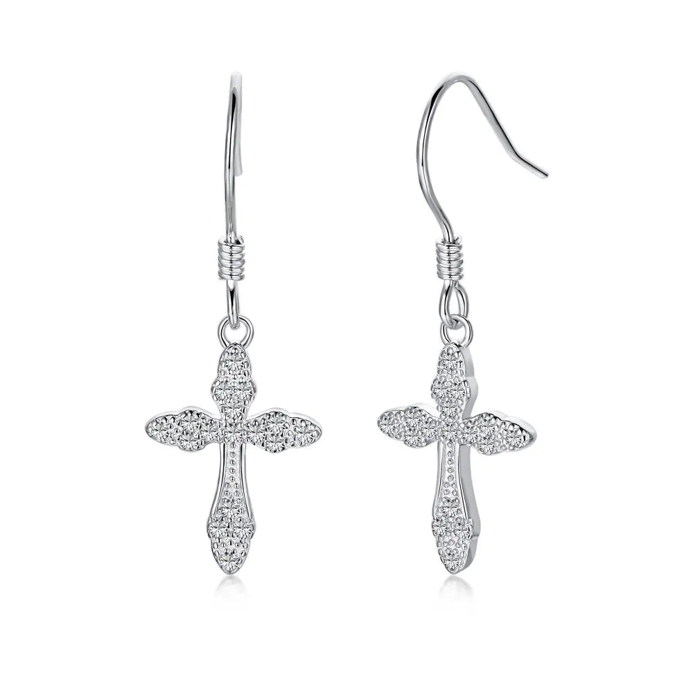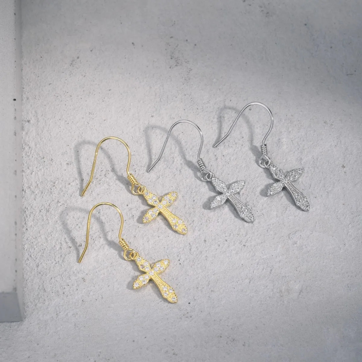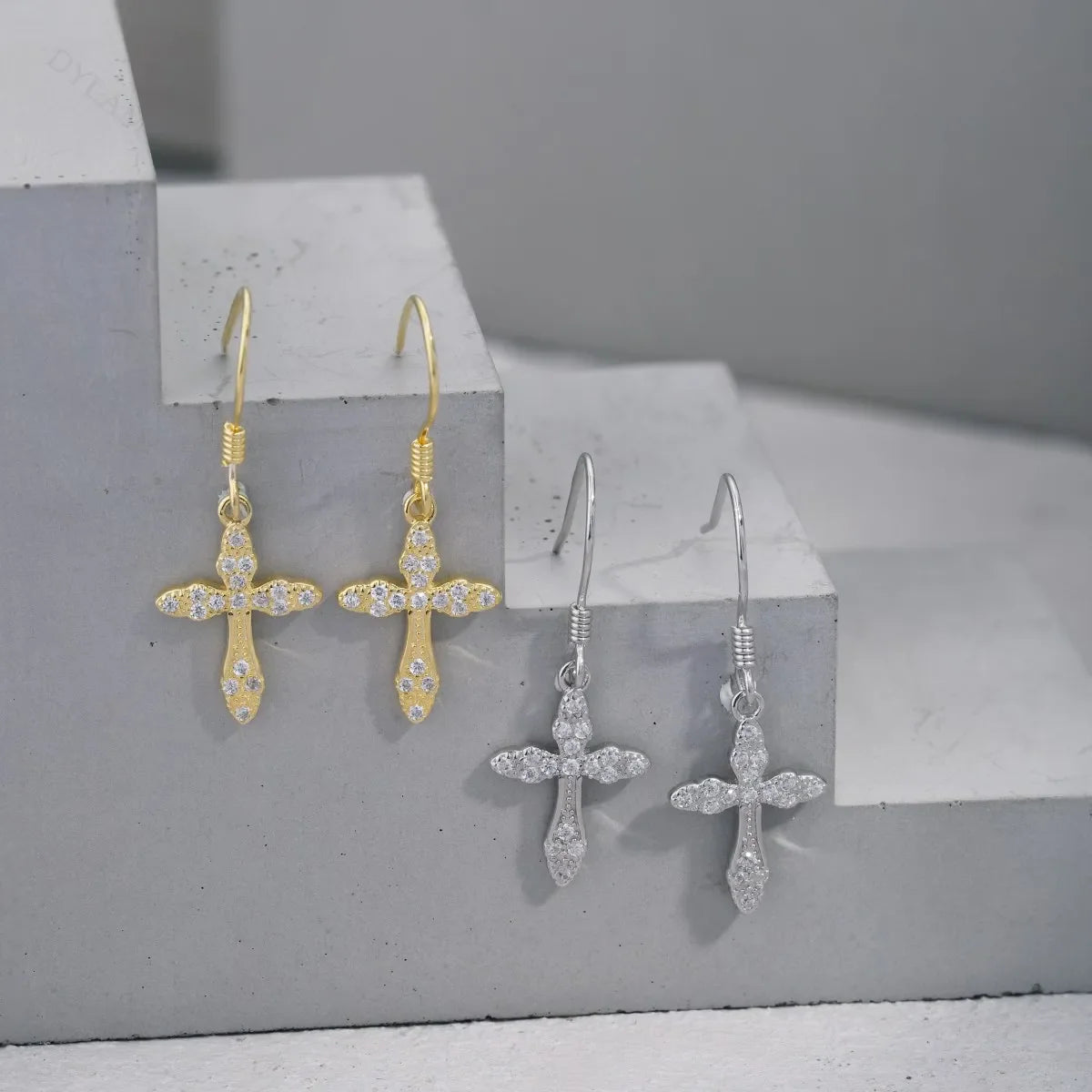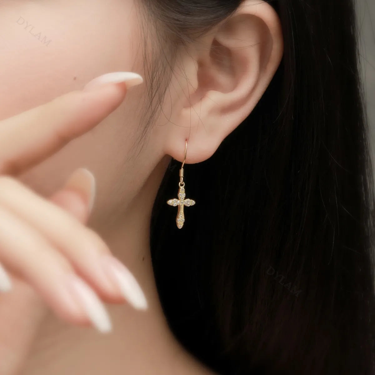 Aetolia Bling Cubic Zirconia Charm Cross Drop Earrings Women 18K Gold Plated Ear Clip Hook Earring 925 Sterling Silver Jewelry
