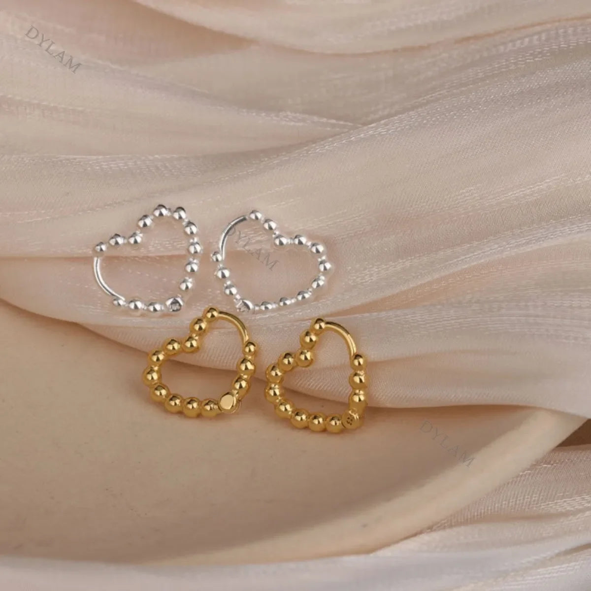 Aetolia Bubble Hoop Heart Shape Earrings Bulk Order Piercings Clip On Buckle Beaded Designed Wholesale no Minimum Silver Earrings