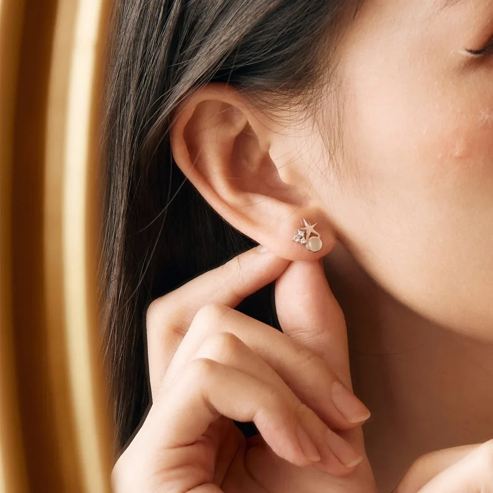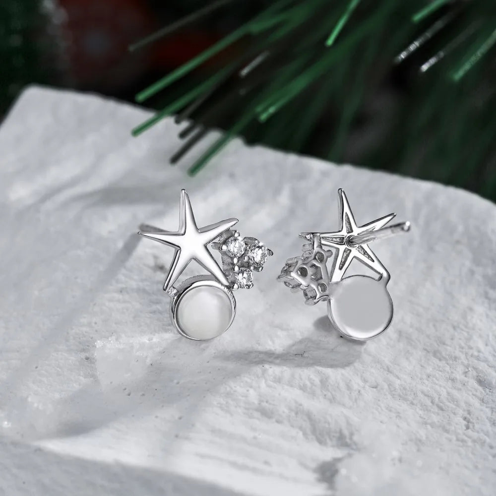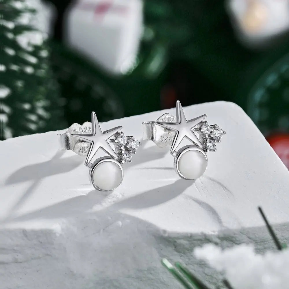 Aetolia Christmas Jewelry 925 Sterling Silver Shell Pearl Stud Earring With Cubic Zirconia Spinel Star Studs Earrings For Women