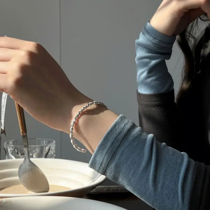 Aetolia Classic Design S925 Sterling Silver Bracelet Bangle Chain Open Adjustable Braided Shape Bangles Bracelets For Women