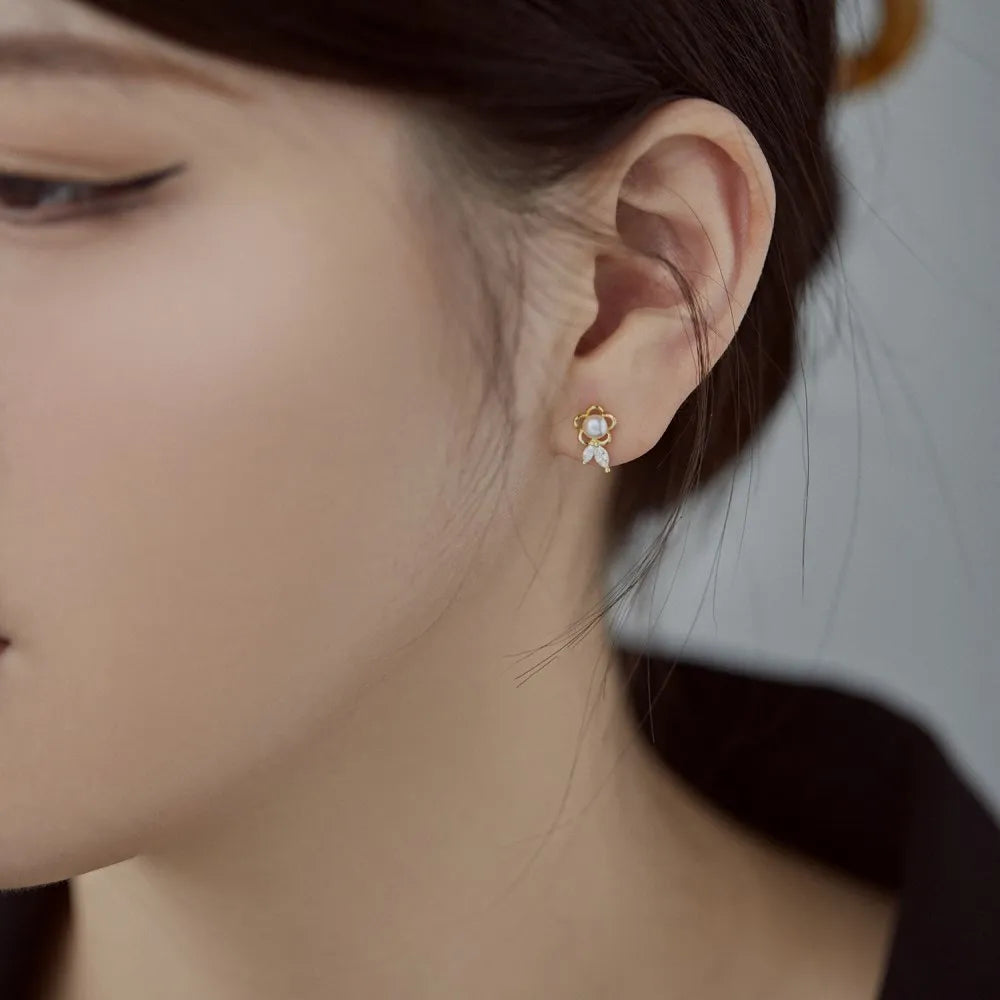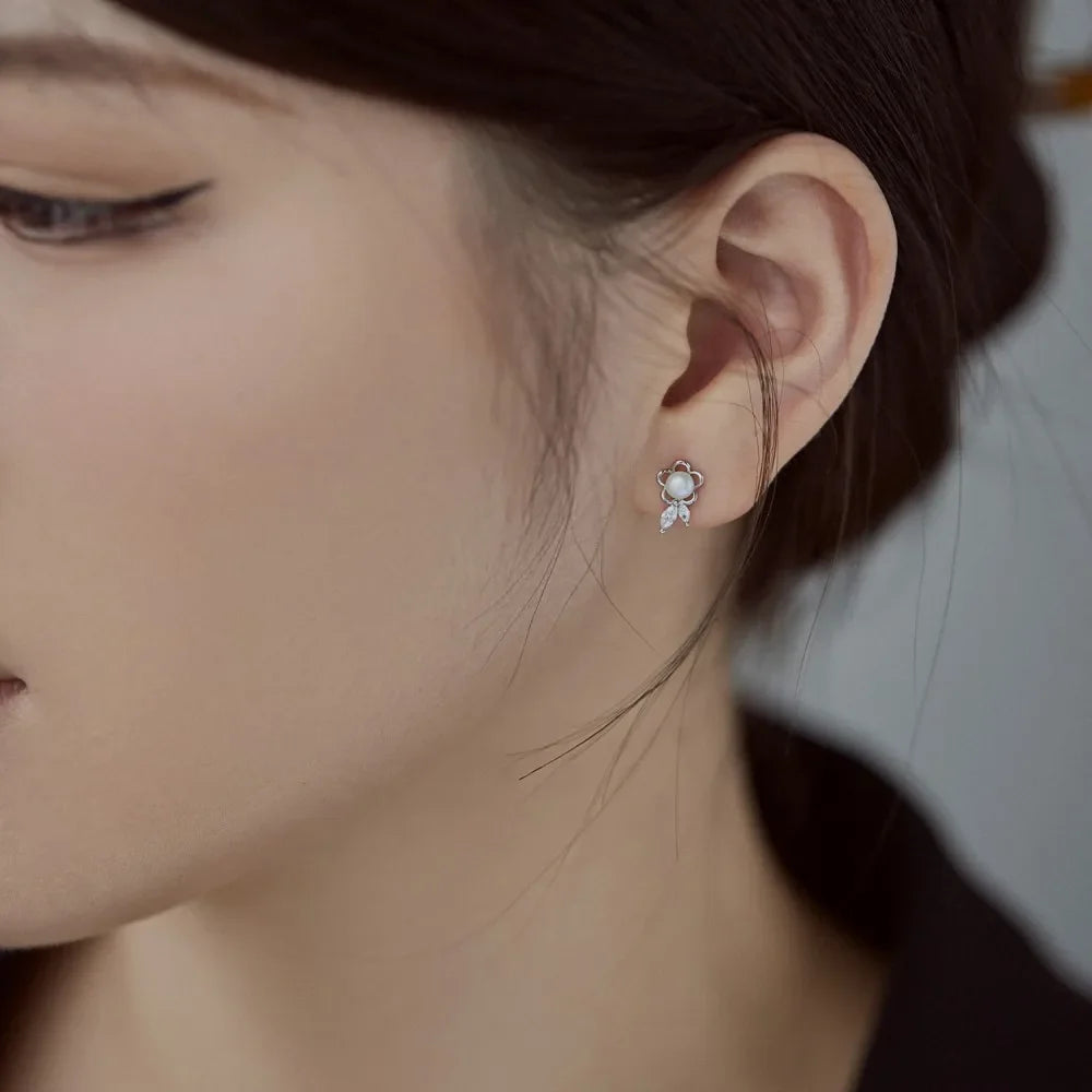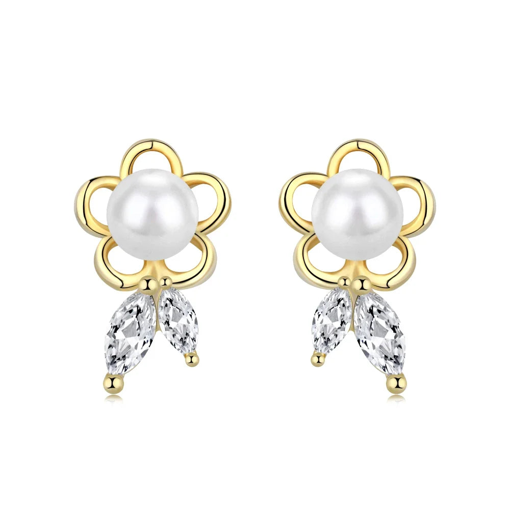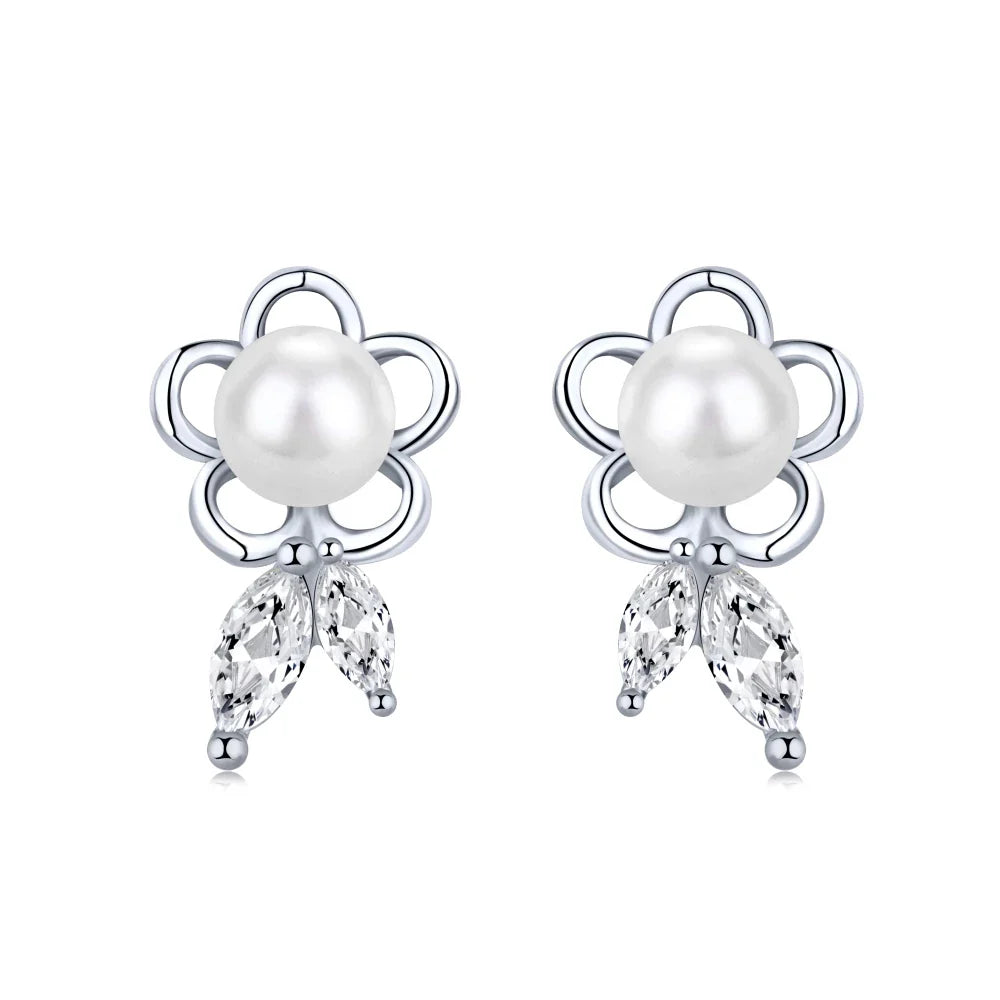 Aetolia Cubic Zirconia 925 Sterling Silver Earring Charm Hollow Flower Pearl Stud Earrings For Women Engagement Jewelry Party Gift