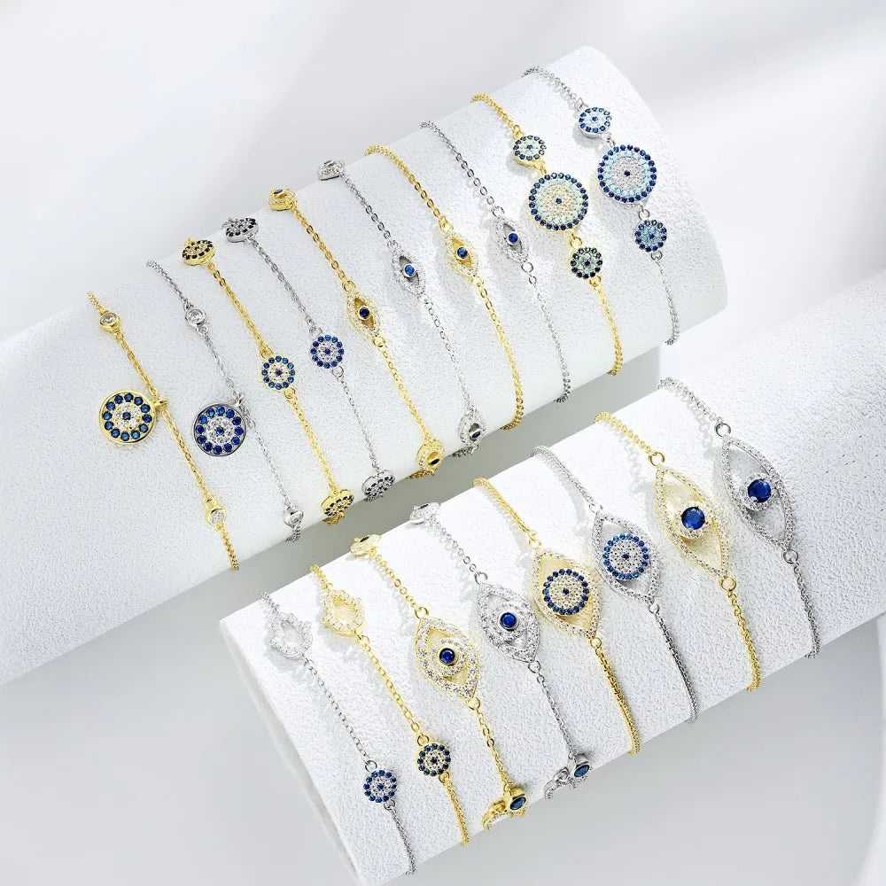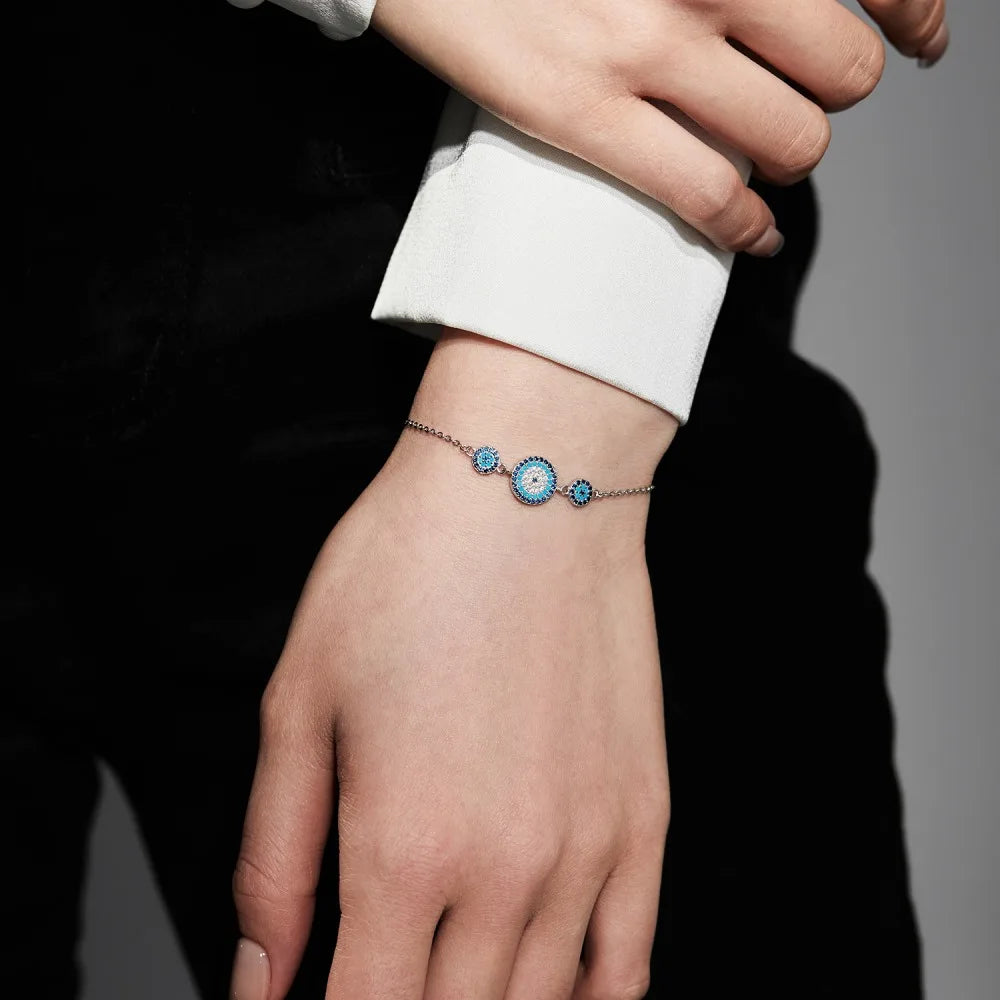 Aetolia Cubic Zirconia Blue Devil Eye Bracelet 925 Sterling Silver Jewelry 18K Gold Tennis Diamond Charm Bracelets Women