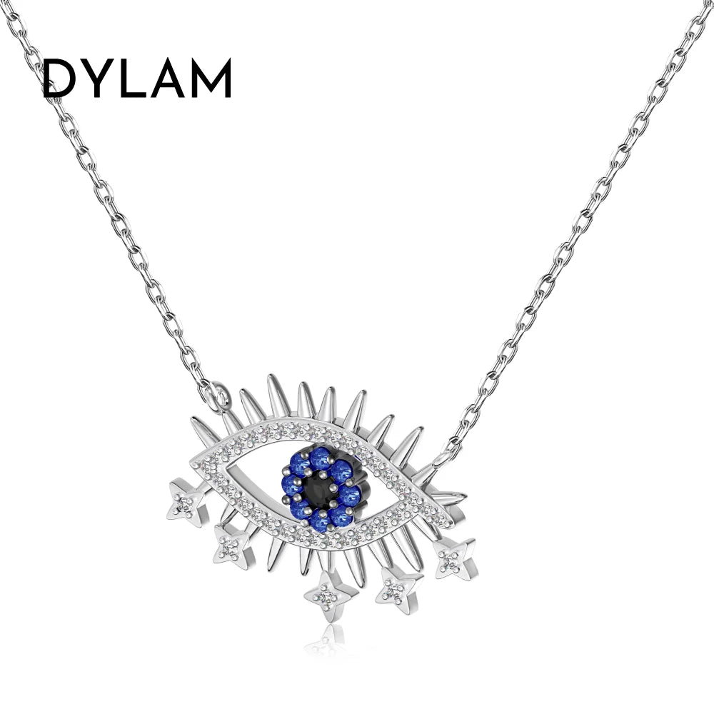 Aetolia Custom Hot Selling Classic 925 Silver Chain Link Lucky Blue Devil Eyes Necklace Cubic Zircon Pendant Necklaces For Women