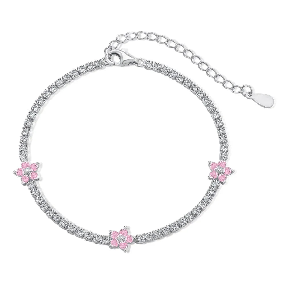 Aetolia Dainty 18K Gold Plated Bracelet Women Colorful Flower Charm 5A Cubic Zirconia Chain 925 Sterling silver Tennis Bangles