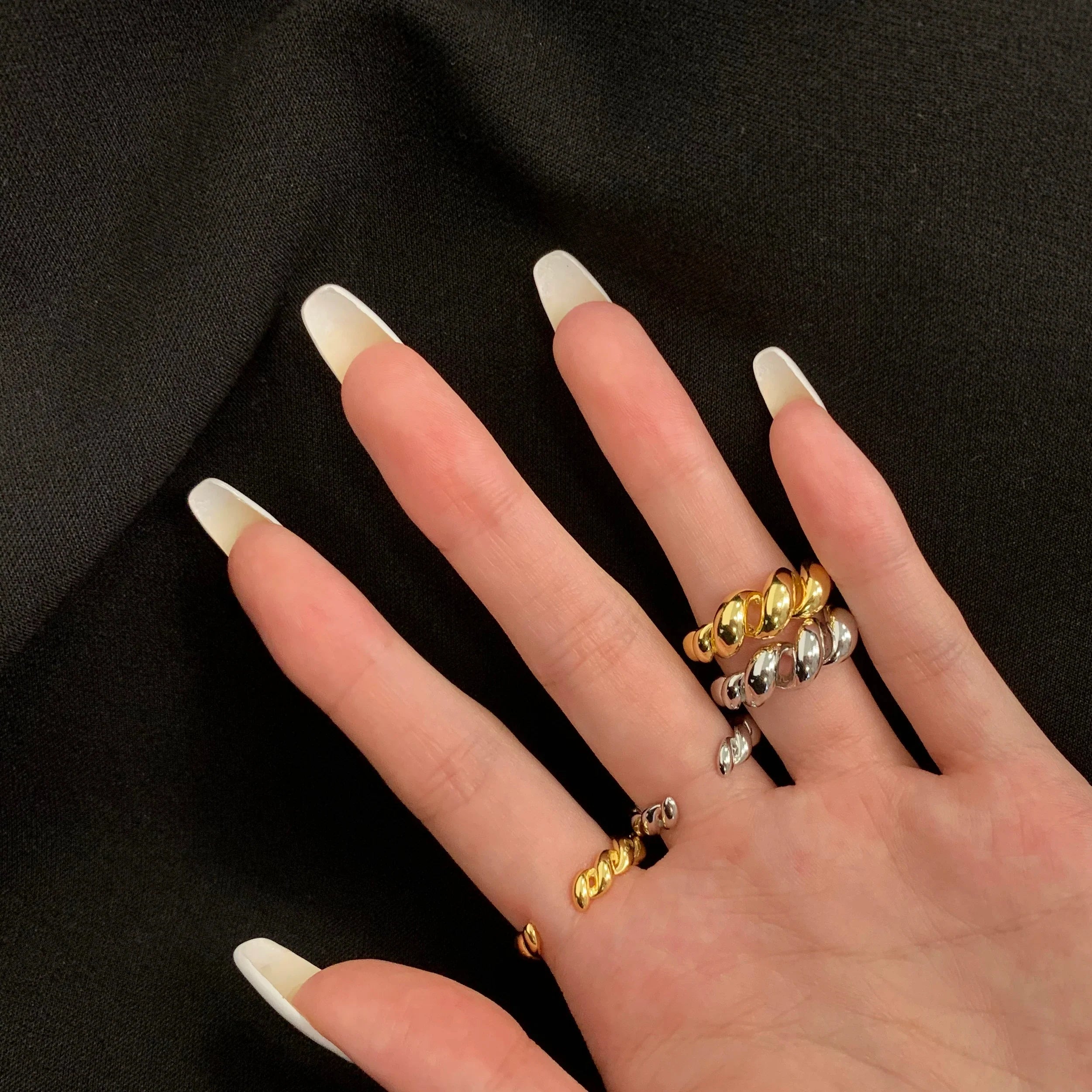 Aetolia Dainty Anillos De Plata 925 Silver Jewelry Joyeria Twisted Croissant Adjustable Ring Gold Plated Jewelry 18K Gold Rings