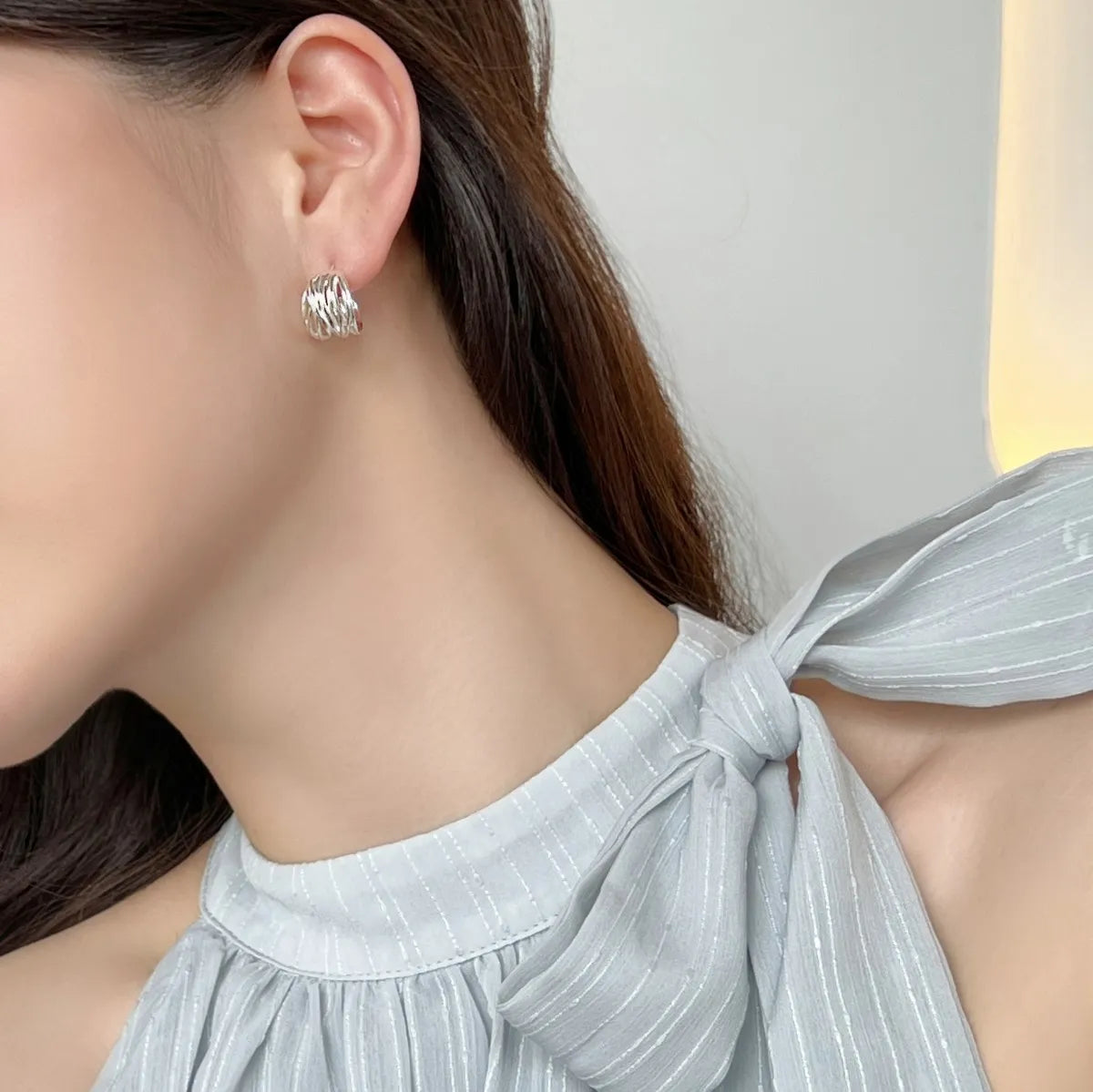 Aetolia Dainty Jewelry Multilayer Lines Circle Stud Earring S925 Sterling Silver Huggie Hoop Cross-Lined Heavy-Duty Earrings Women